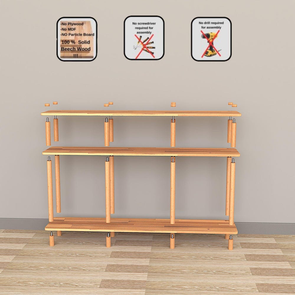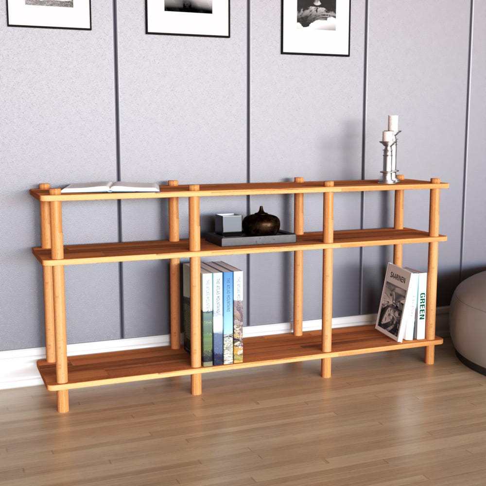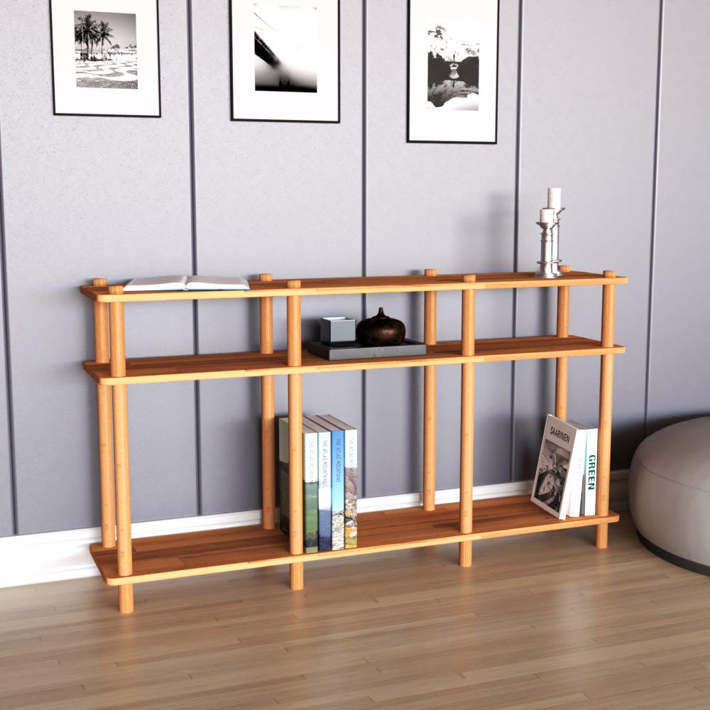 Solid Beech Wood Large Media Consol-Bookcase, Solid Wooden TV Stand, Custom Size Wood Bookshelf, Minimalist Large-Short Wood Bookshelf