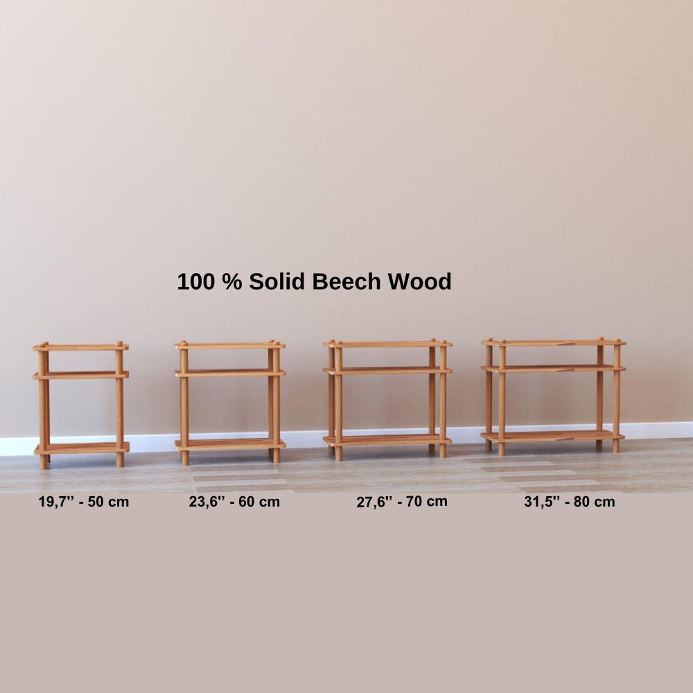 This unique multi-purpose product is an incredibly functional furniture piece that you can use as a nightstand in the bedroom or as an elegant coffee table in the living room. Crafted from high-quality solid beech wood, it combines durability and elegance.