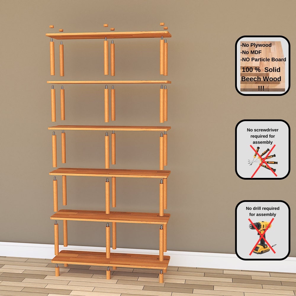 Solid Beech Wood Office Bookshelf, Custom Design Solid Wood Bookshelf with 6 Shelves for Office, Storage Solution for Home Office
