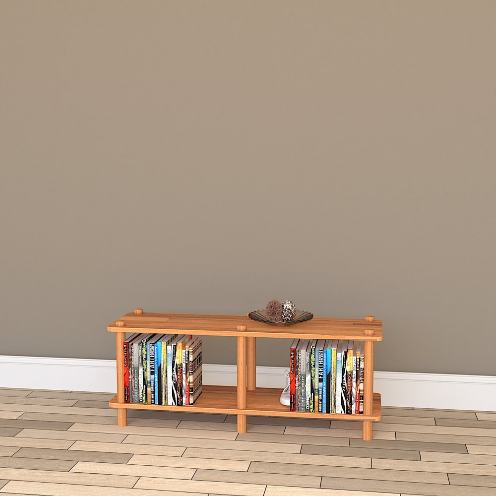 Solid Beech Wood Short Bookcase with 2 Shelves for Living Room, Custom Solid Wooden Wall Bookshelf Unit, Entryway Minimalist Short Bookcase