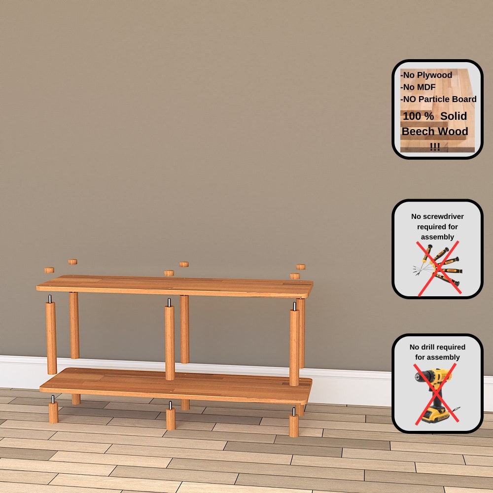 This handmade minimalist double shelf is a wonderful choice to add both elegance and functionality to your home decor. The rounded corners contribute to a modern and graceful design. Furthermore, the use of solid wood enhances durability and quality.