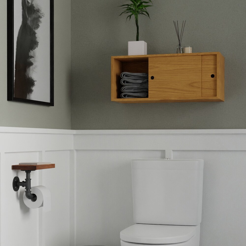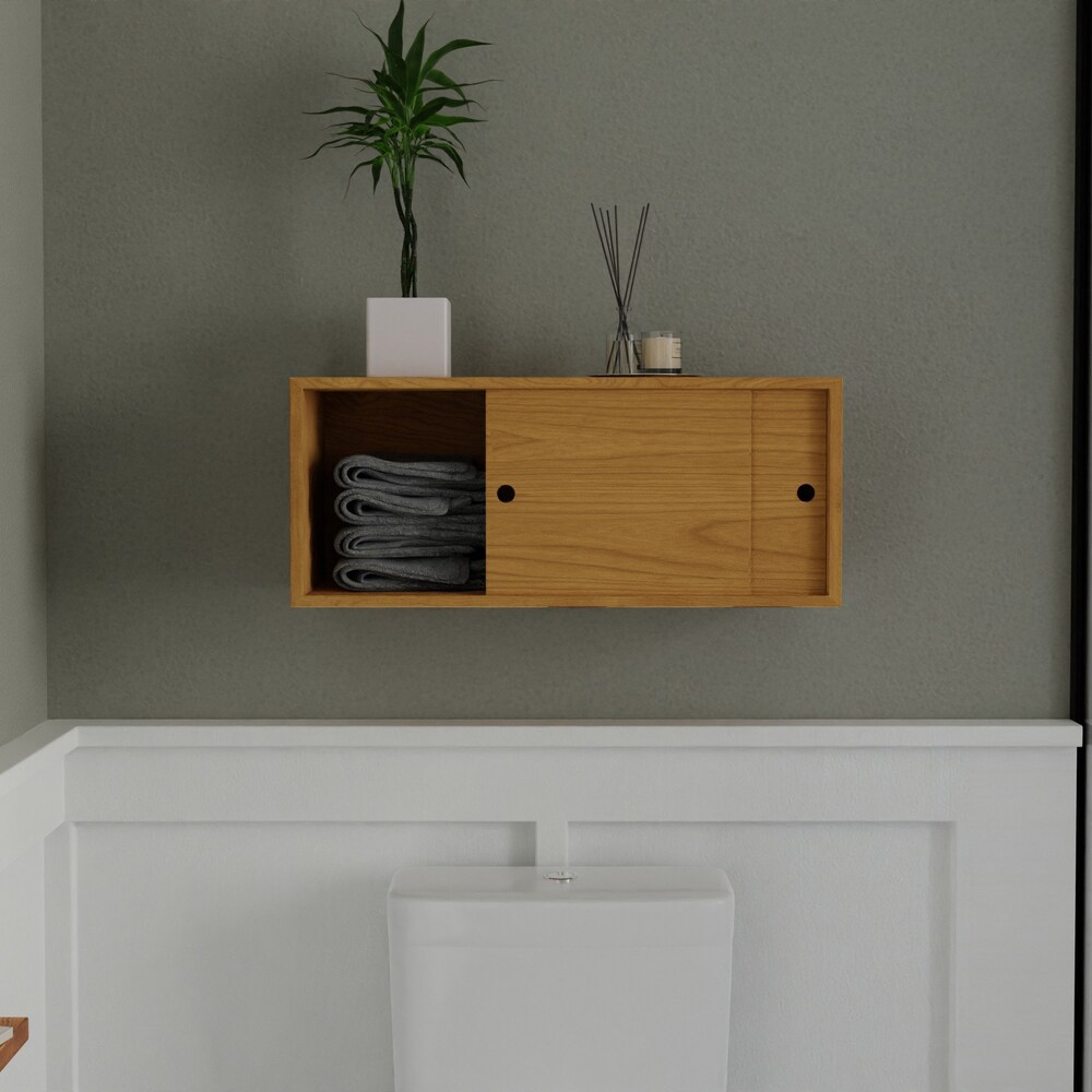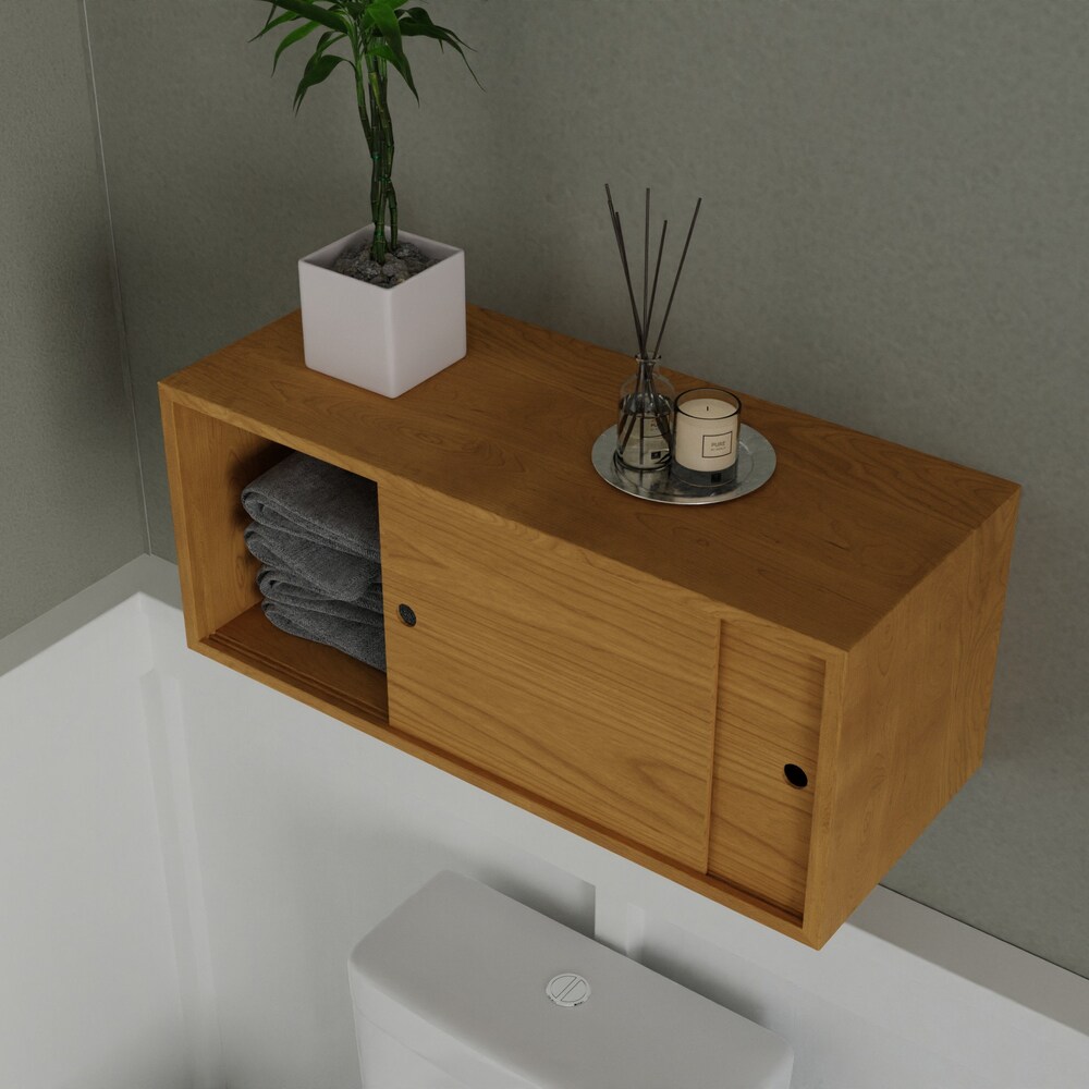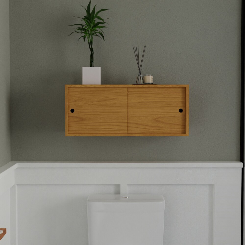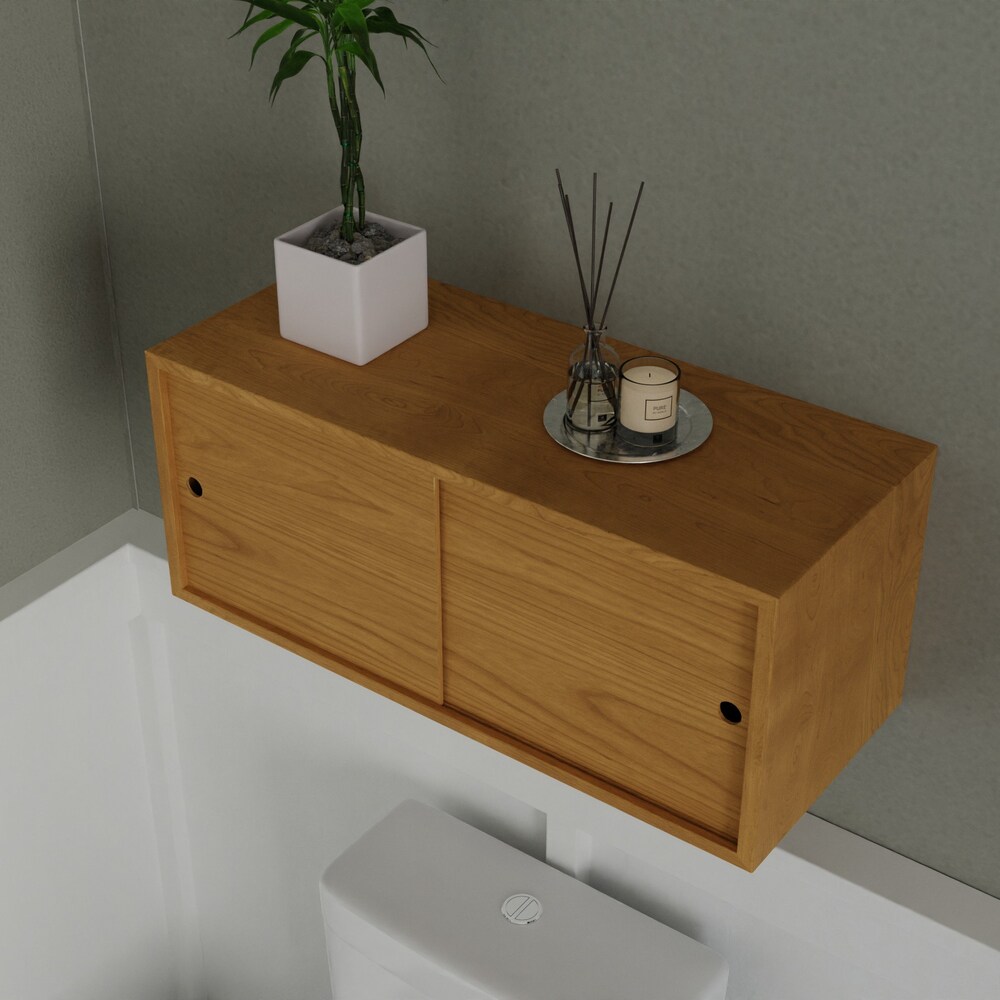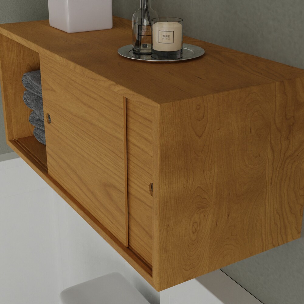Solid Cherry Bathroom Storage Cabinet with Sliding Doors, Floating Shelf Vanity