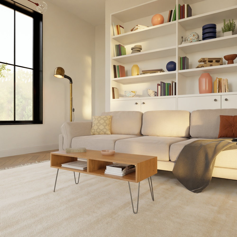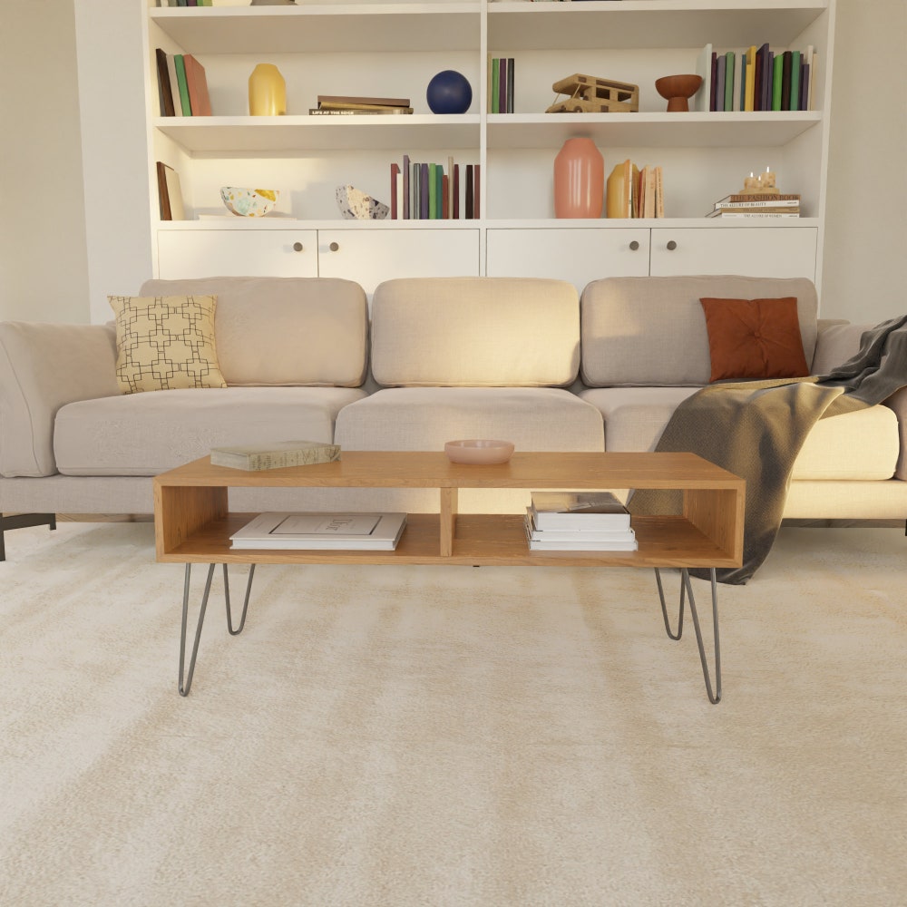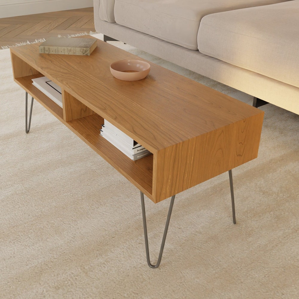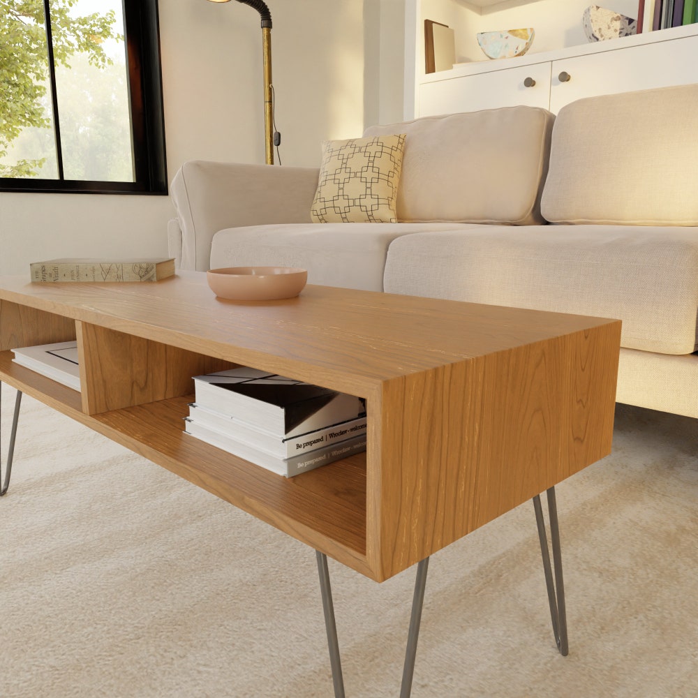 Our modern coffee table is Mid Century inspired and is handmade using the highest quality Solid American Cherry hardwood.