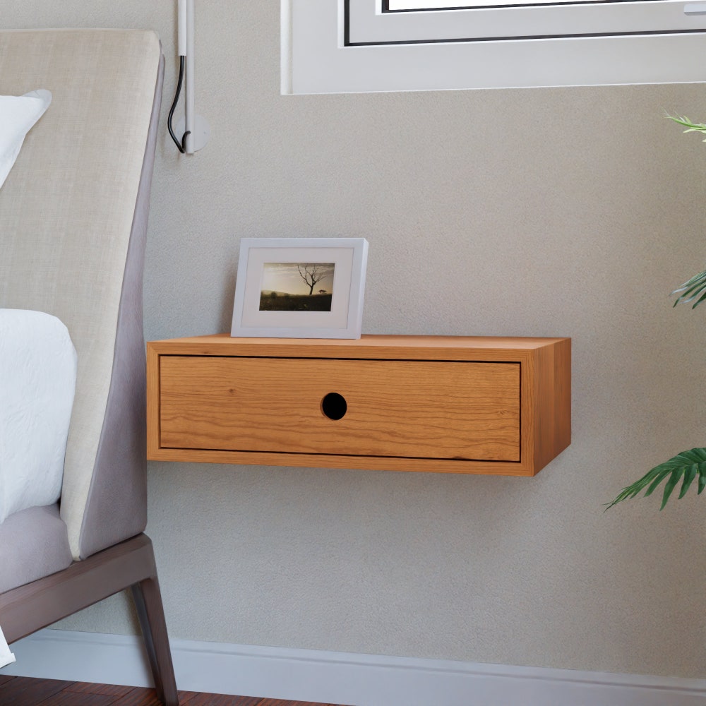 Solid Cherry Floating Nightstand with Drawer
