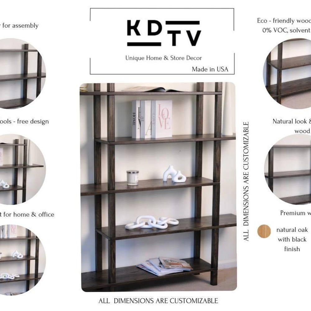 Solid Oak wood bookshelf Handmade custom furniture Open shelf display bookcase Mid century bookcase Unique tools -free design Wood bookshelf