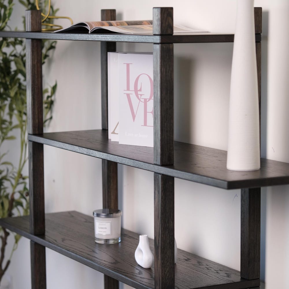 The unique tools – free natural wooden bookshelf with the black finish. Handmade wooden shelf, designed for a modern and minimalisti aesthetic. Crafted from high – quality natural wood, this shelf is a perfect solutiob for displaying books, decor, plants, or everyday essentials.