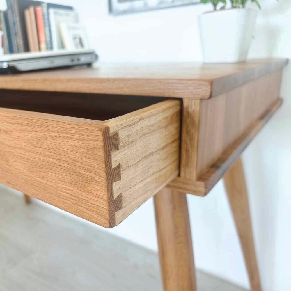 Handcrafted solid oak desk, the perfect combination of durability, natural beauty, and timeless design. Ideal for adding personality to any space.