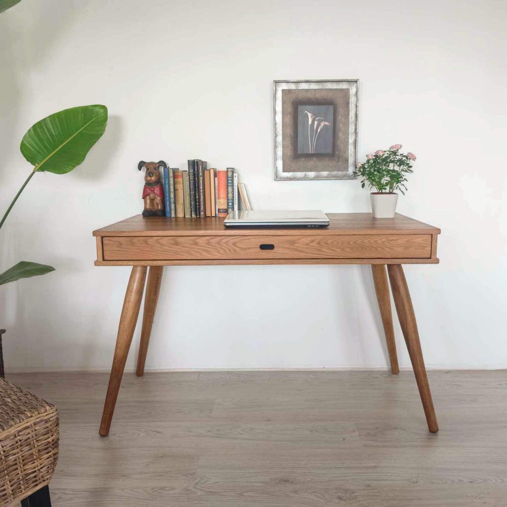Solid Oak Wood Desk | Handcrafted Rustic Modern Home Office Table | Natural Oak Writing Desk | Ref. 01255