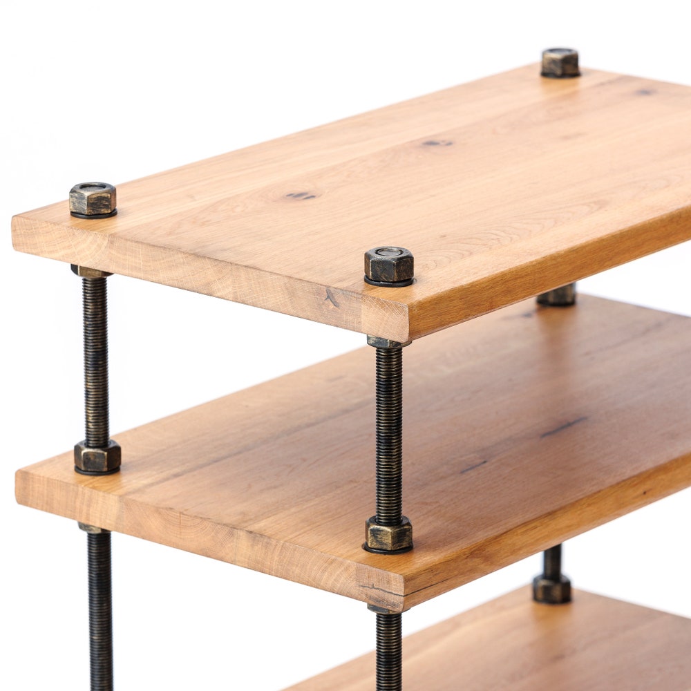 – 50 kg – 3 tier rack standard dimensions 118*40 cm from industrial pipe/threaded rods/ solid beech wood panels.