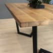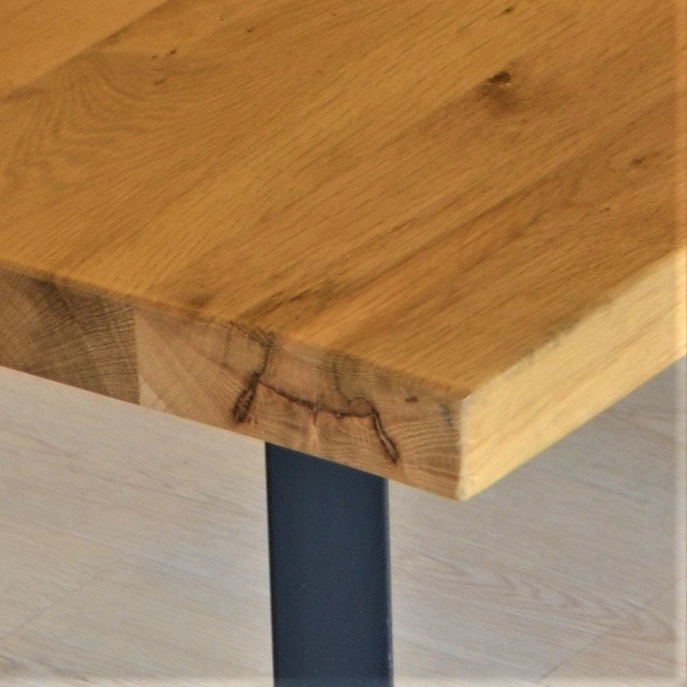The solid wood dining table is handcrafted with the unique grain and texture of the oak tree.