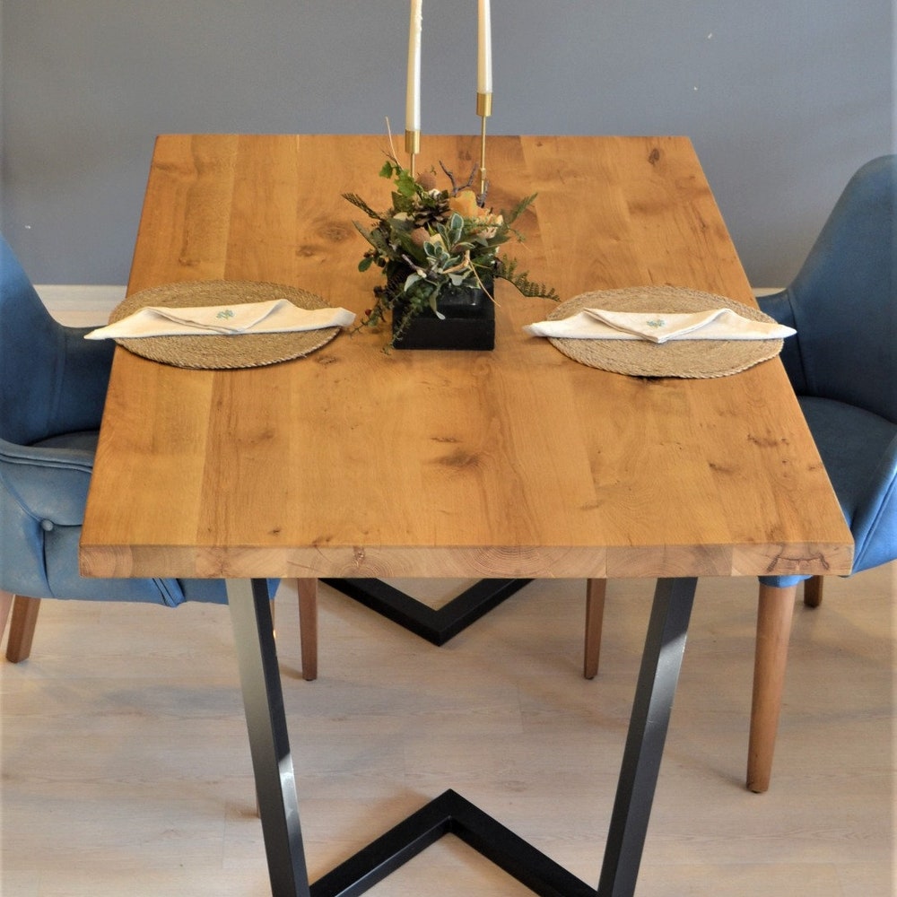 Solid Oak Wooden Dining Table / Handcraft Rustic Wood Dining Table / Scandinavian Kitchen Table
