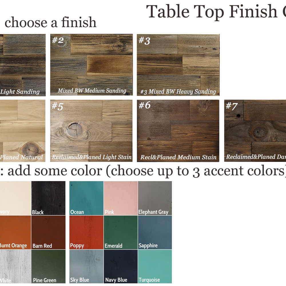 We offer a wide variety of Farmhouse tables. Please visit our shop to see more pictures of table top options as well as our many Home décor items! If you enjoy this product, check out our Etsy shop for more rustic barn wood decor.