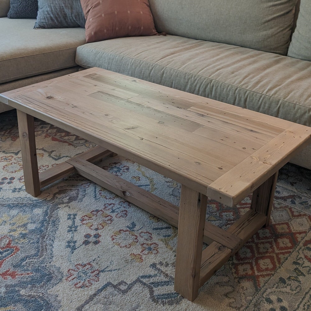 Solid Real Reclaimed Wood Alpine Coffee Table | Minimalist Early Modern Contemporary Wooden Living Room Furniture | Designer Quality Decor