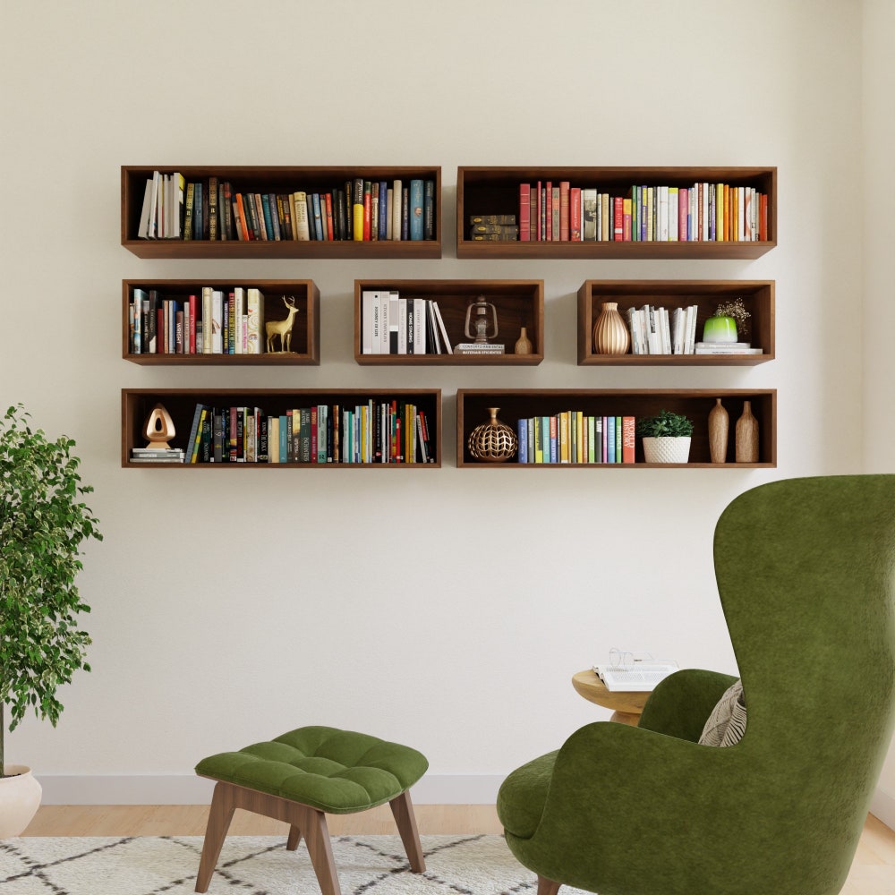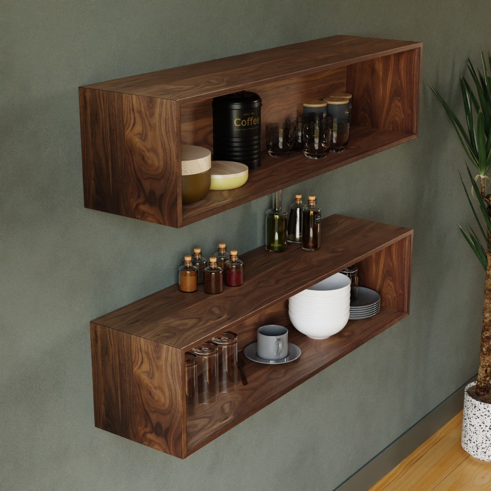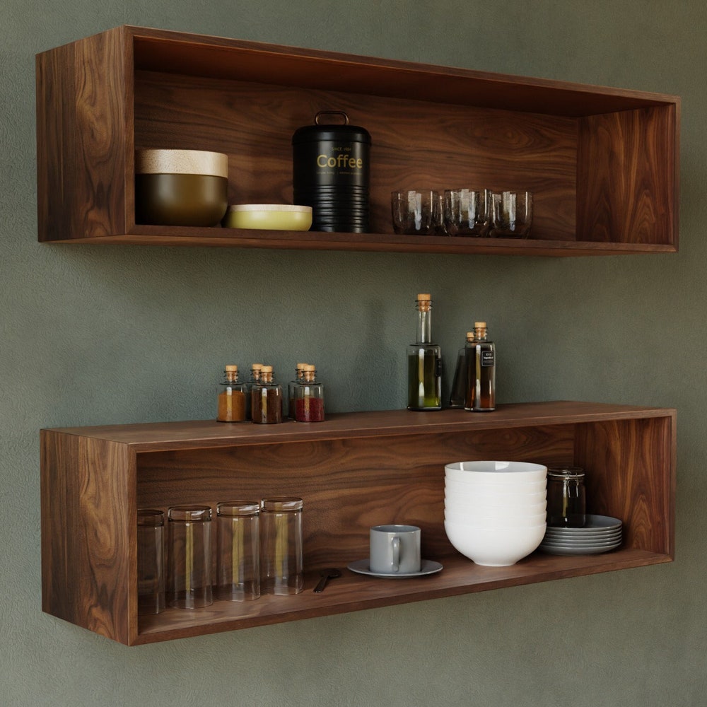Solid Walnut Floating Display Case, Shelf Bookcase