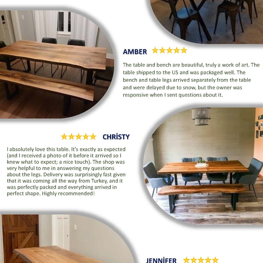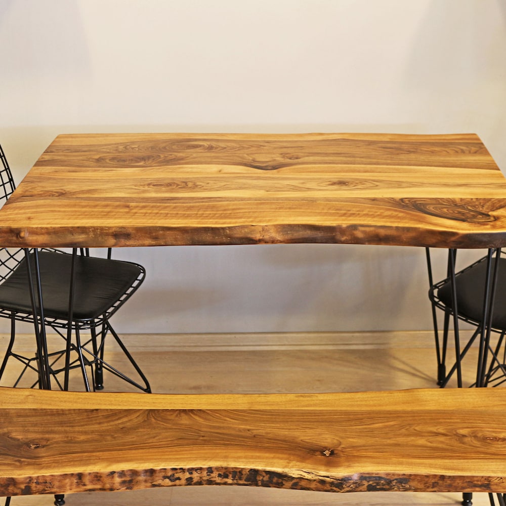 Solid Walnut Wood Dining Table , Live Edge Table with Metal Legs, Rustic Wooden Table, Farmhouse Kitchen Table
