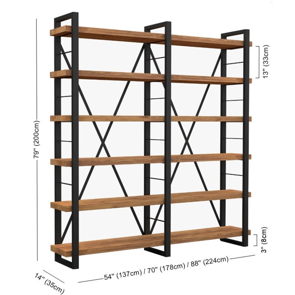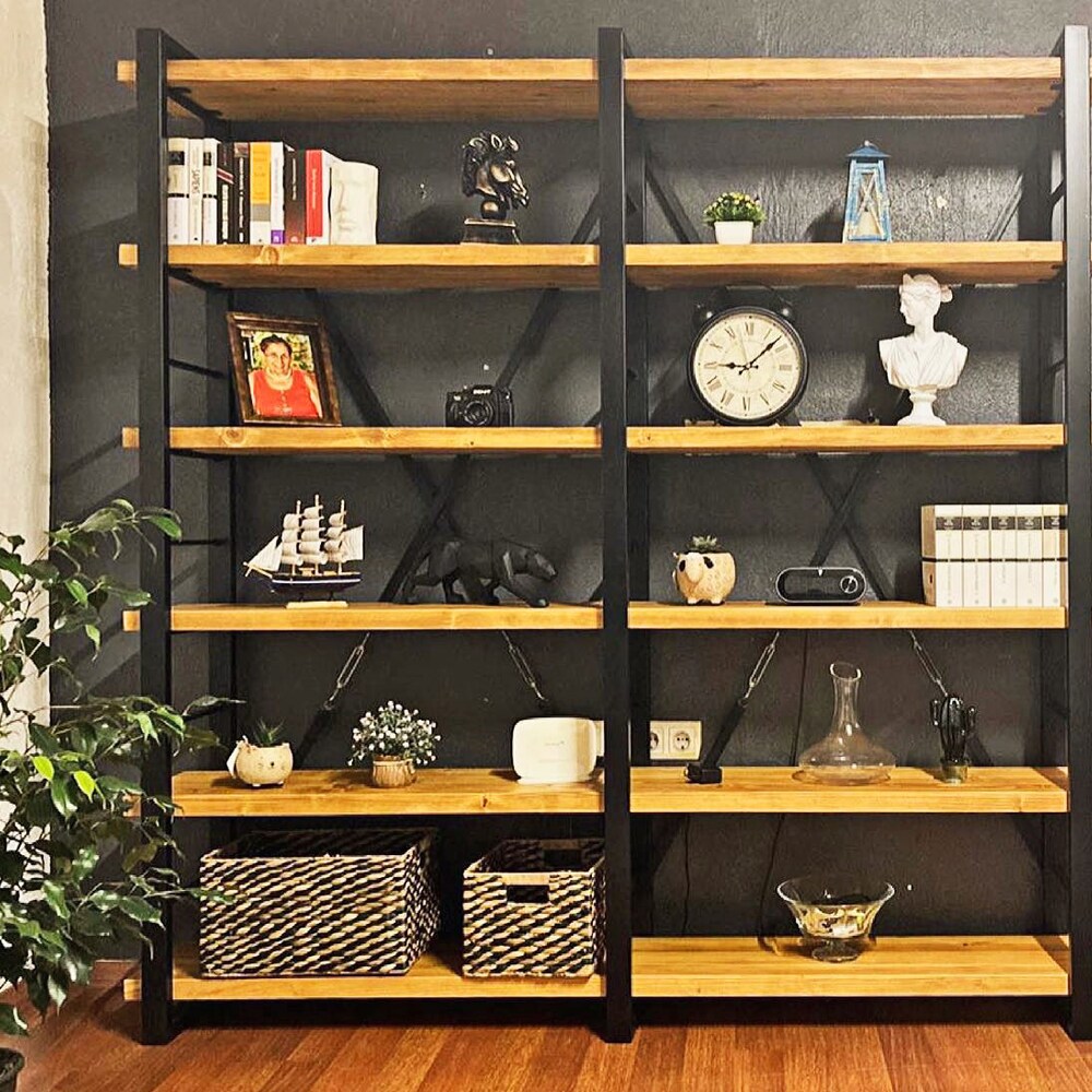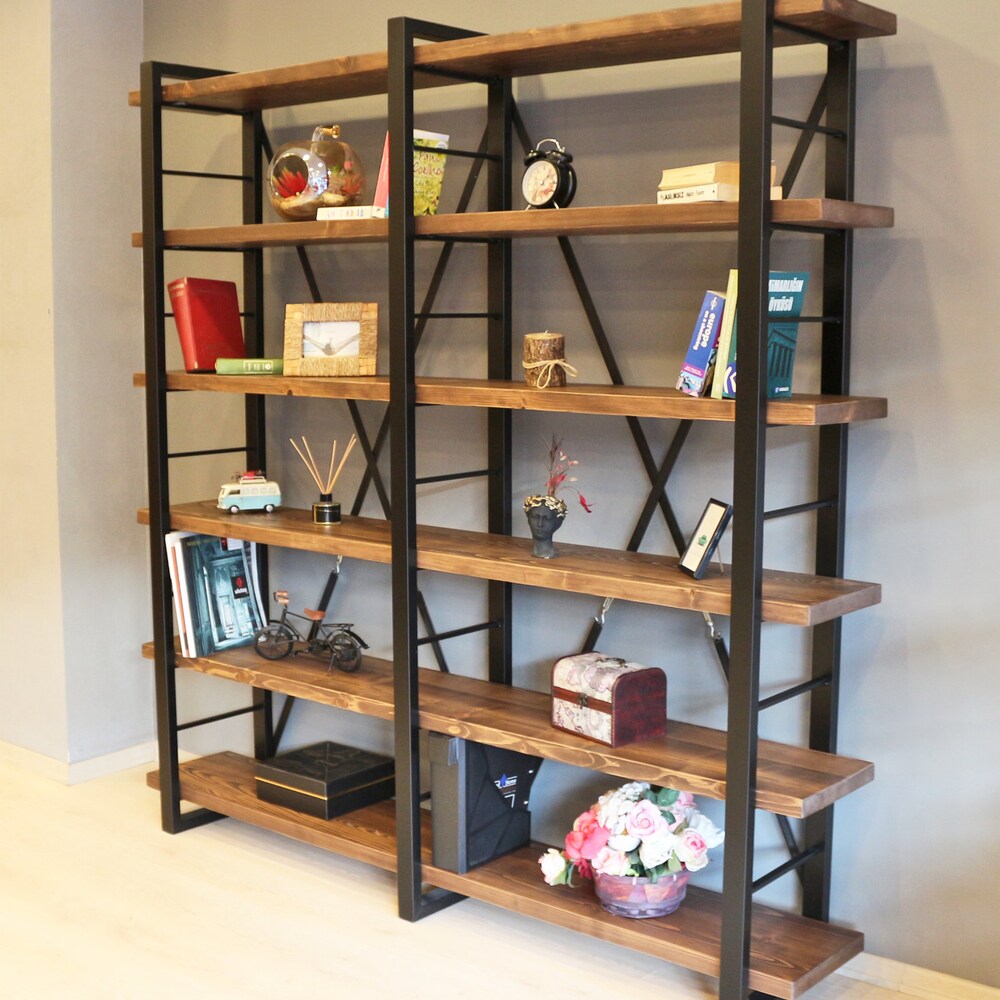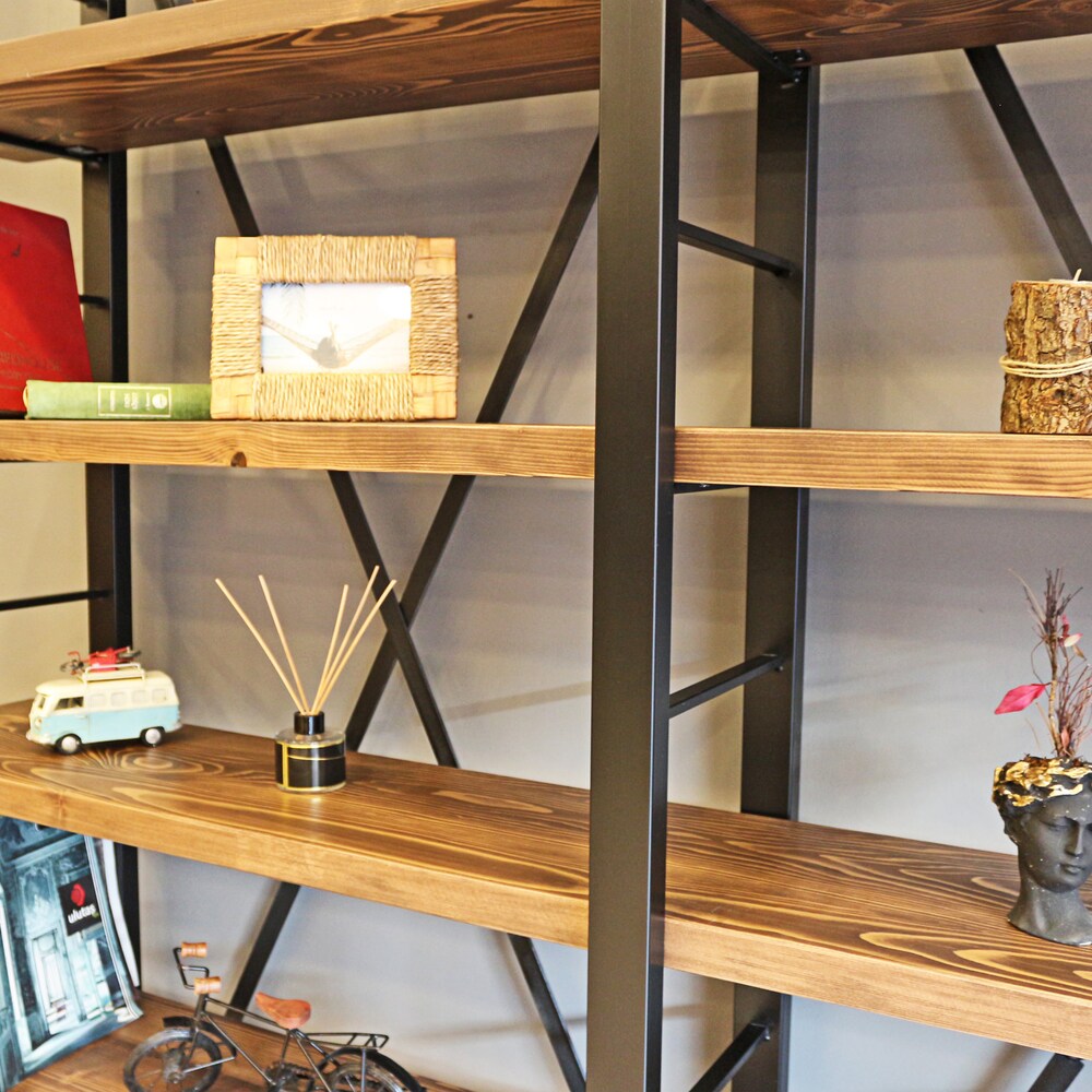 Solid Wood and Metal Bookshelf – Timber X / Handmade Decorative Farmhouse Bookcase / Object Display and Shelving Unit