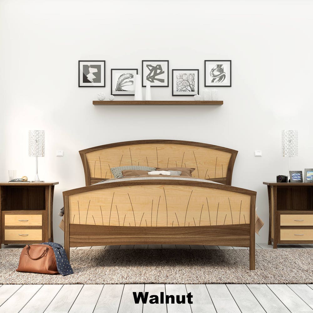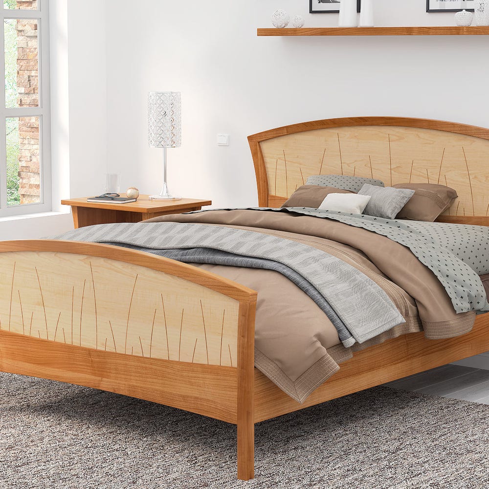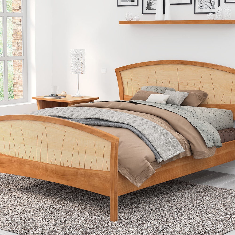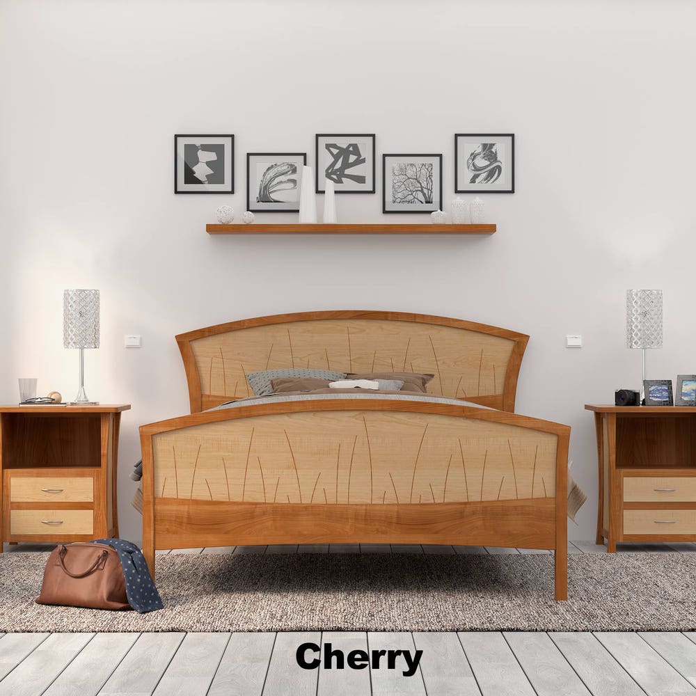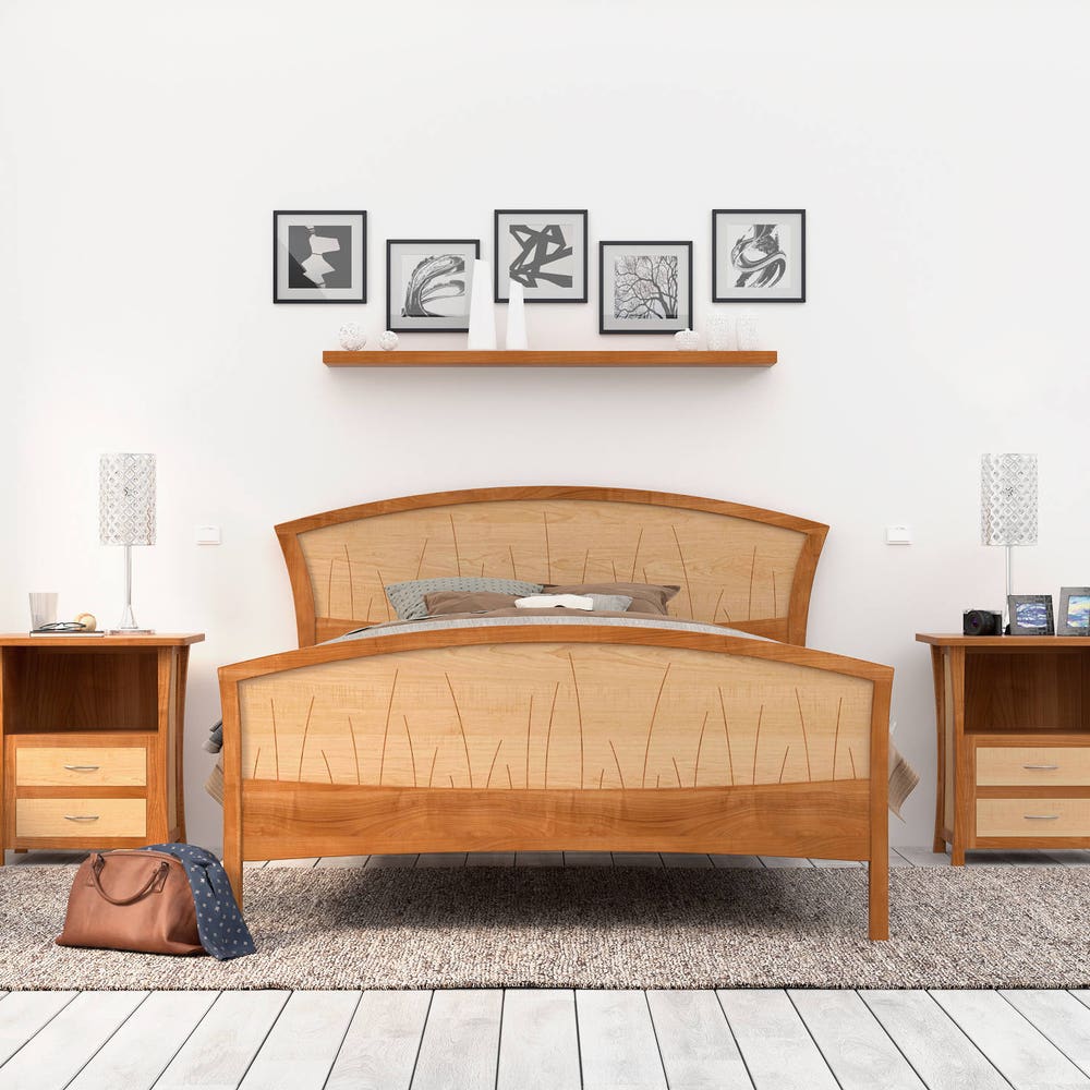 Solid Wood Bed Frame Handmade in Natural Cherry With Curly Maple “River Rushes”