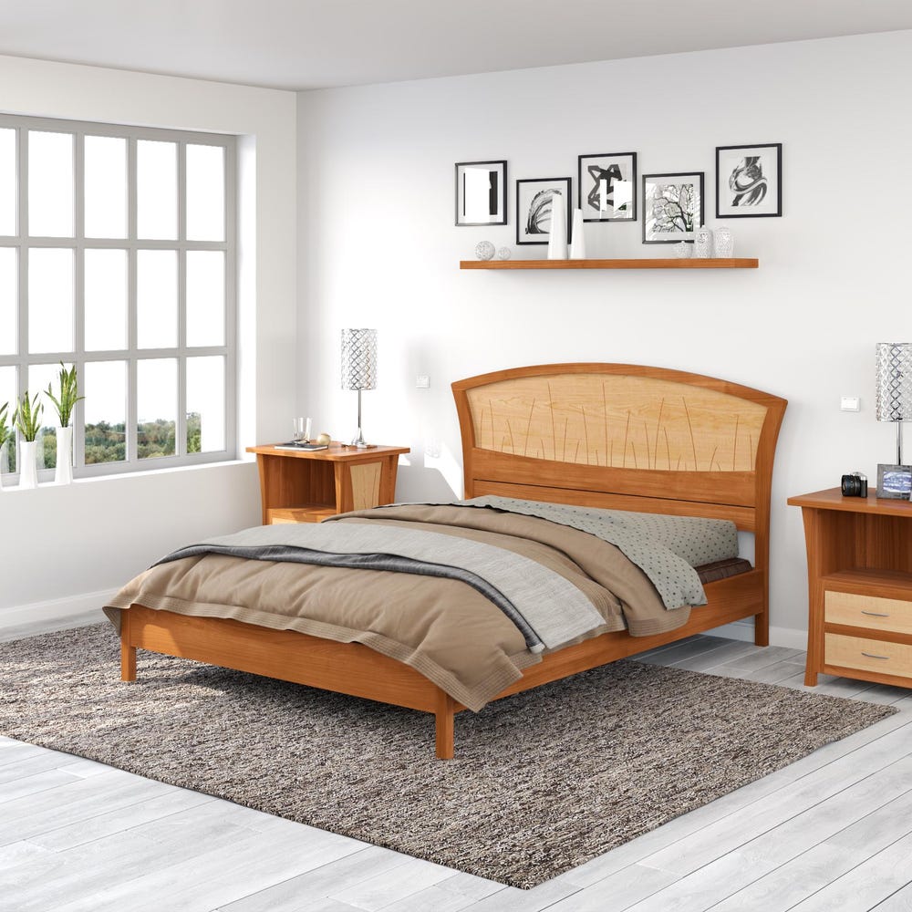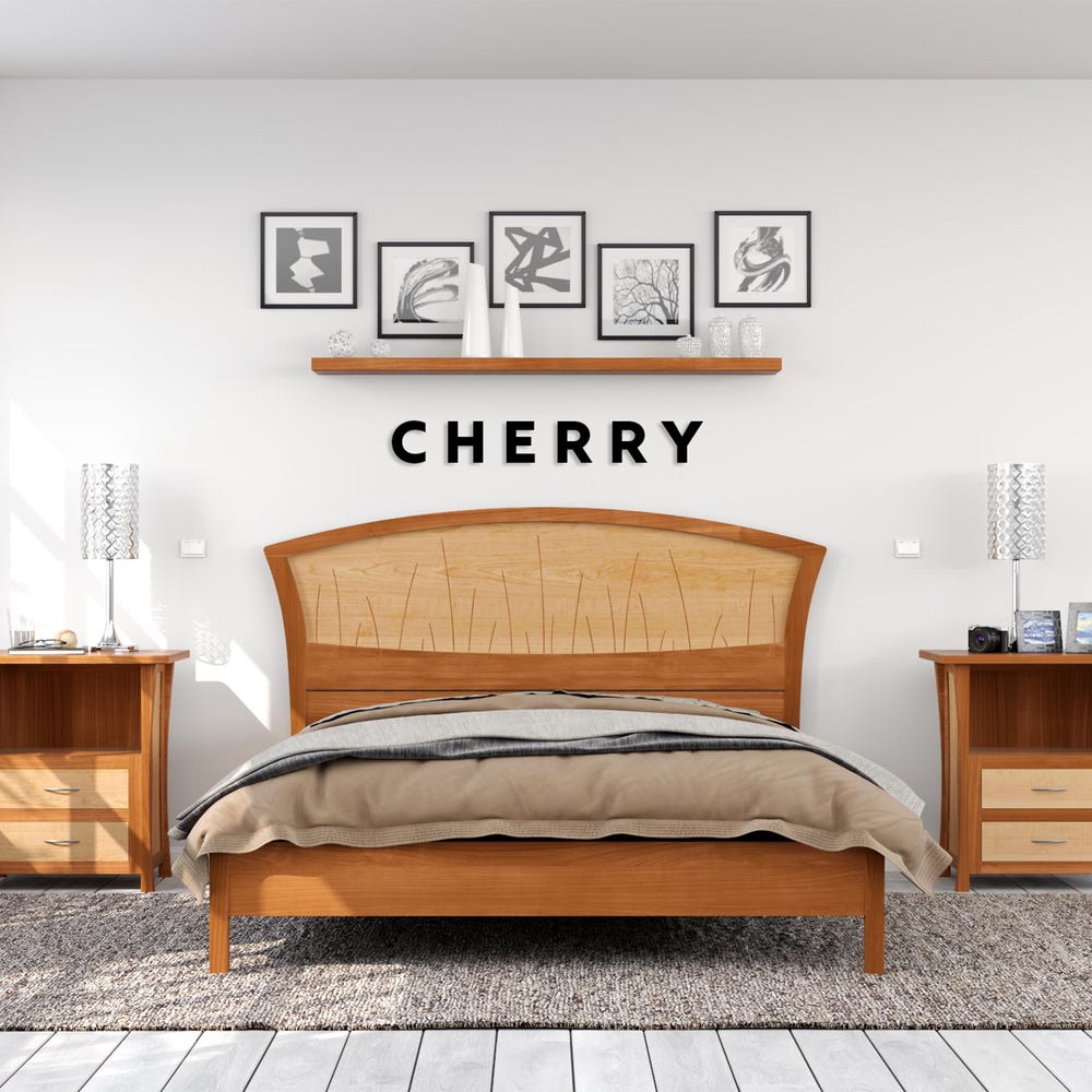 Solid Wood Bed Frame in Cherry and Maple Wood, Made In All Sizes “River Rushes”
