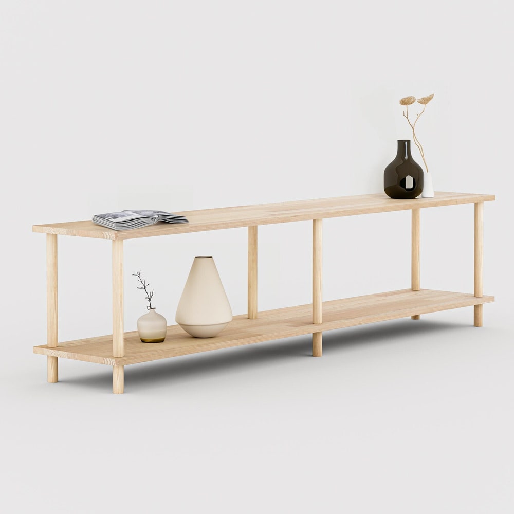 A sleek and functional open shelving unit crafted from durable solid pine wood. Designed for versatility, it’s perfect for displaying books, plants, vinyl records, and decor while keeping your space organized.