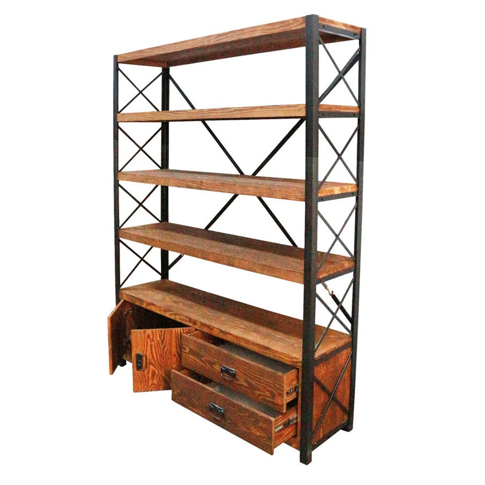 Solid Wood Bookshelf with Cabinet – Cross X / Display Bookcase with Drawers / Home Storage with Wooden Shelves / Custom Size and Colors