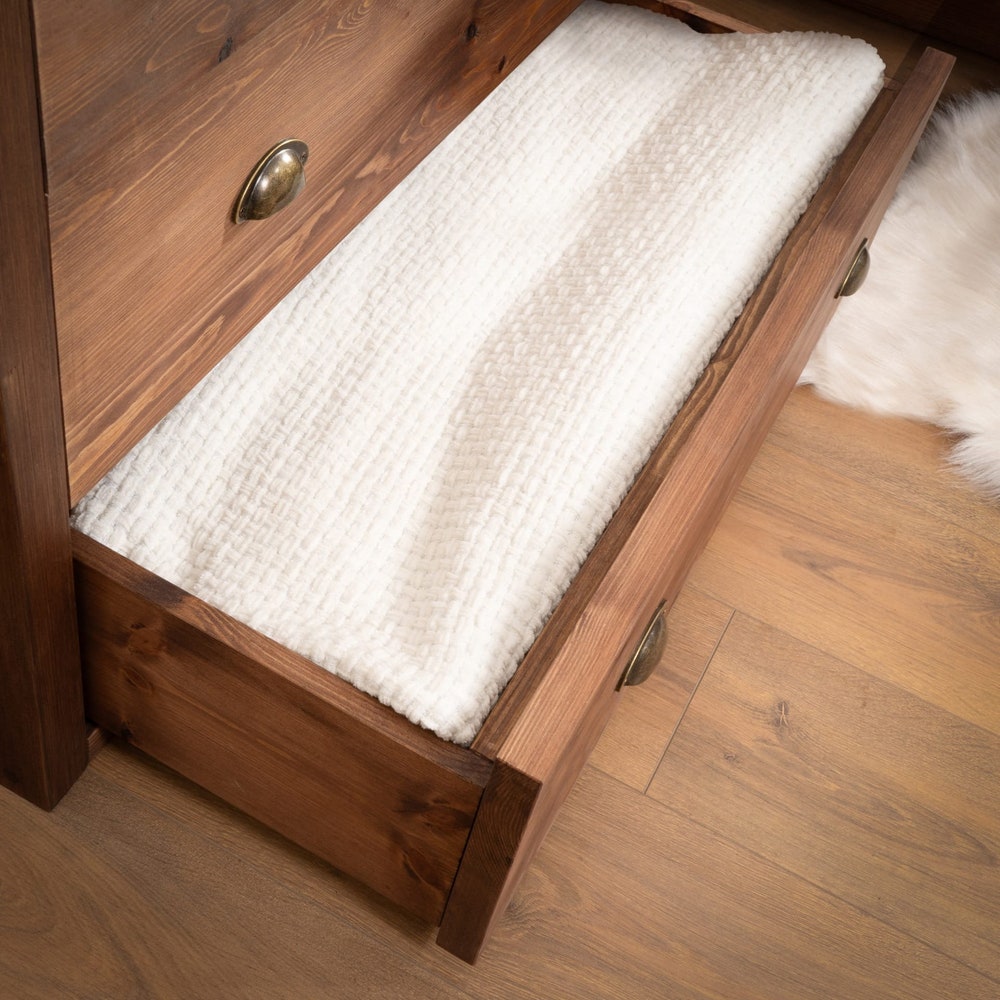 Elevate your bedroom with the exquisite charm and unparalleled craftsmanship of our Solid Wood Chest of Drawers. Each piece is meticulously constructed by our skilled joiners, ensuring that every drawer glides smoothly and every detail is perfected.