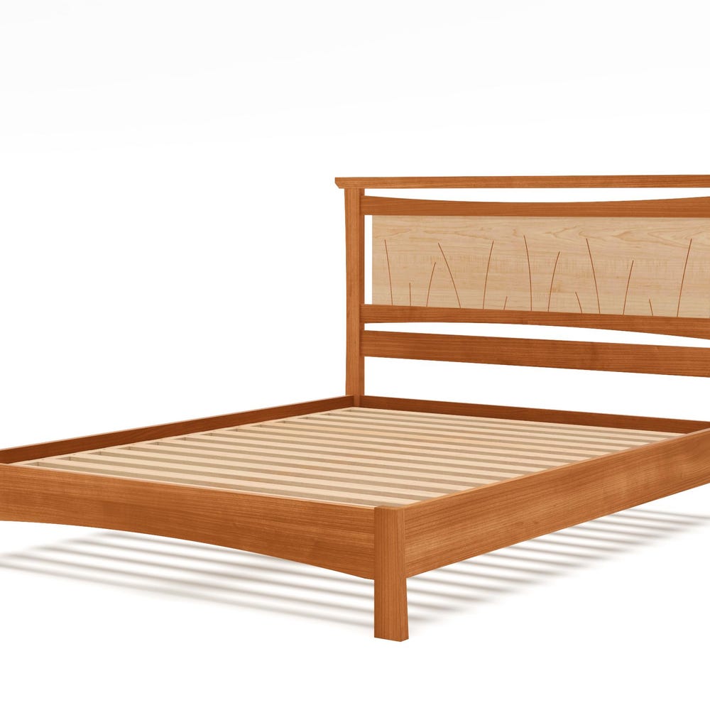 Solid Wood Coastal Bed Frame with Slatted Headboard – Handmade Platform Bed in Full, Queen, or King Size “Seaside Bed”