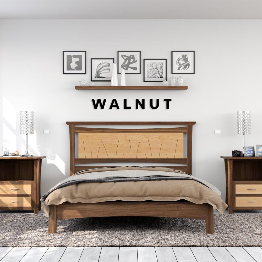 Bed Frame King Gift for Couple – Walnut Patchwork Floor Bed for Bedroom Decor – Platform Bed Frame Handmade Furniture – Queen Bed Frame