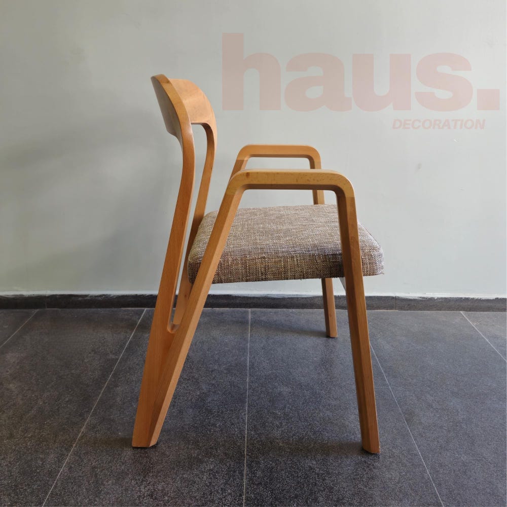 This wooden chair is inspired by mid-century design, showcasing a natural hornbeam wood frame. The soft linen fabric seat adds a touch of sophistication while providing lasting comfort. Ideal for dining, working, or relaxing, this chair fits any setting and is “fully customizable” to suit your preferences. Choose your finish, fabric, or even adjust the dimensions, because at Haus Decoration we create furniture that fits you.