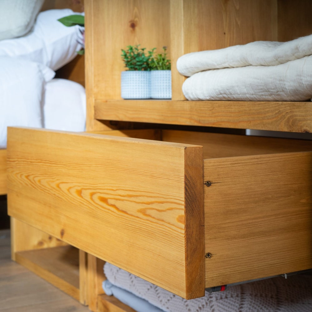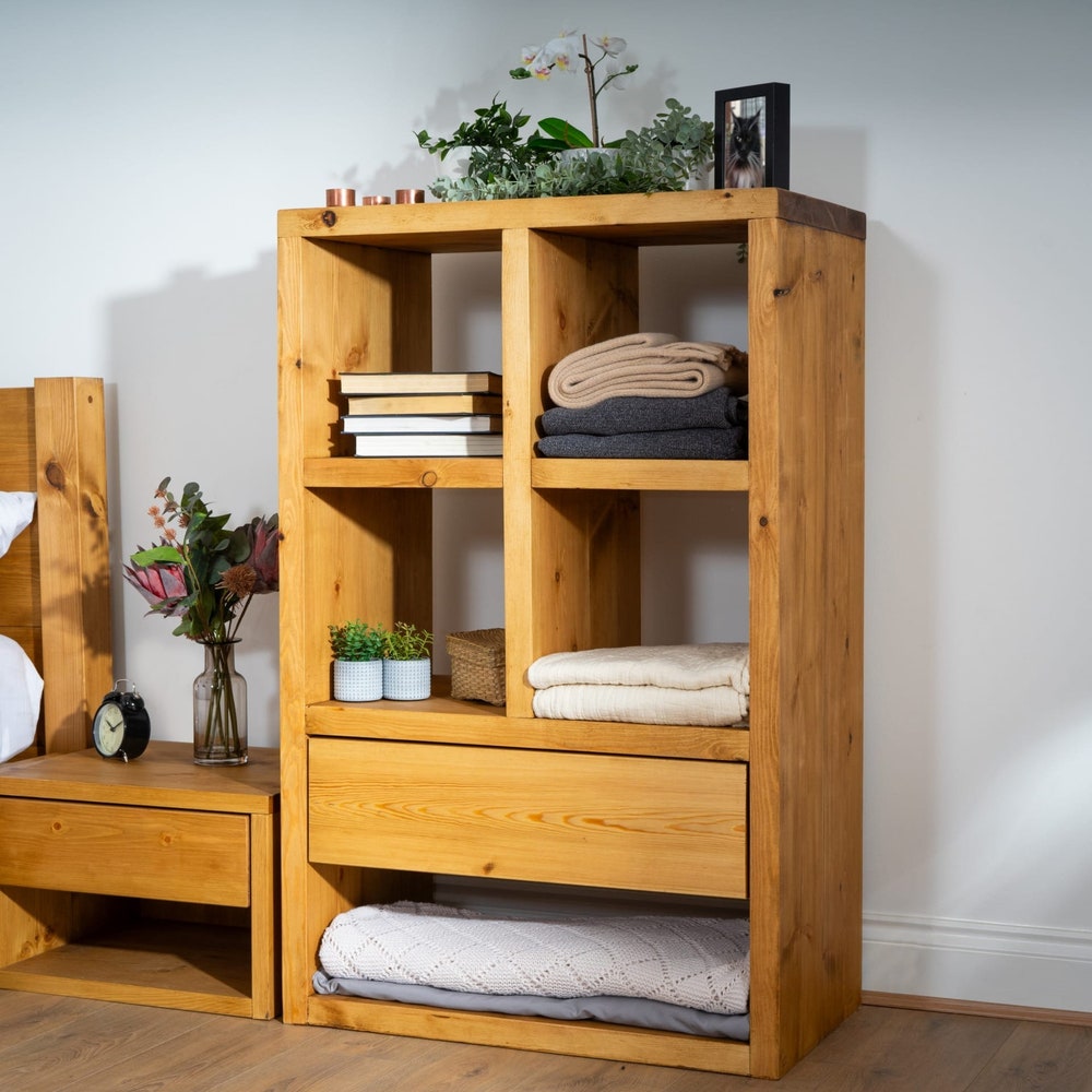 Introducing our Solid Wood Double Storage Unit, meticulously crafted to blend functionality with timeless elegance. Ideal for organizing your bedroom essentials, this piece features a thoughtful design that enhances both style and practicality. Includes five storage shelves, perfect for displaying books, decorative items, or keeping everyday necessities within reach. A smooth-gliding drawer offers discreet storage for personal items, keeping your space clutter-free.