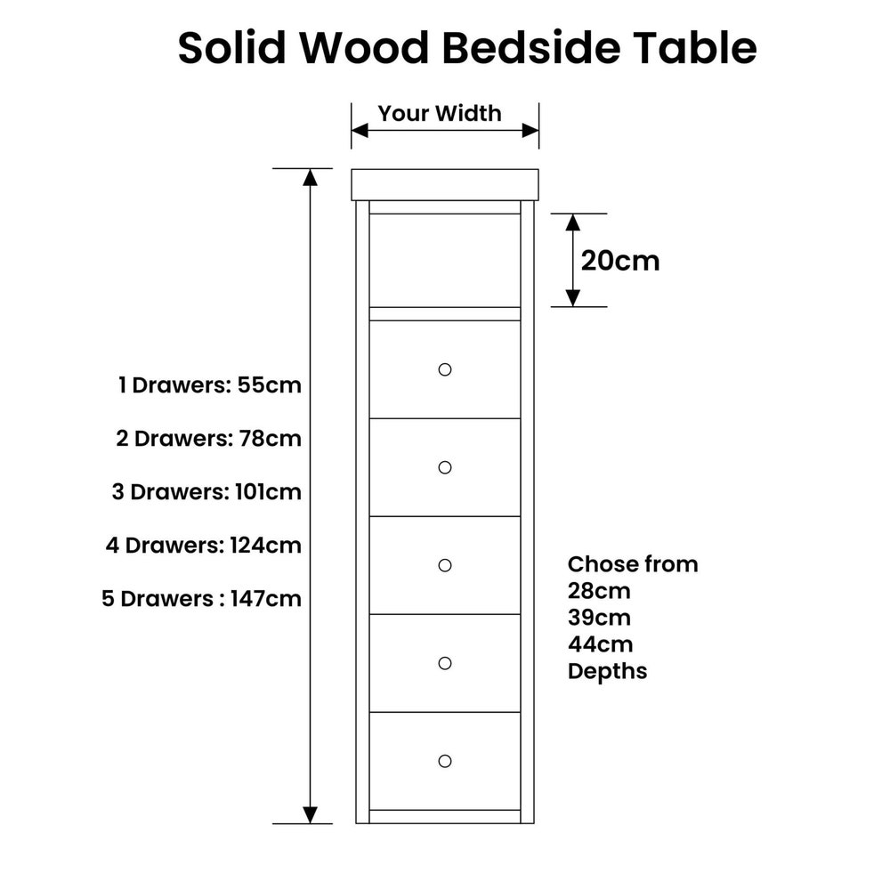 The standard dimensions of the Bedside Table are below but we can customise any dimensions – please contact us for details.