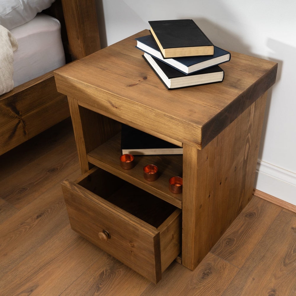 Solid Wood Farmhouse Bedside Table | Reclaimed Timber Style