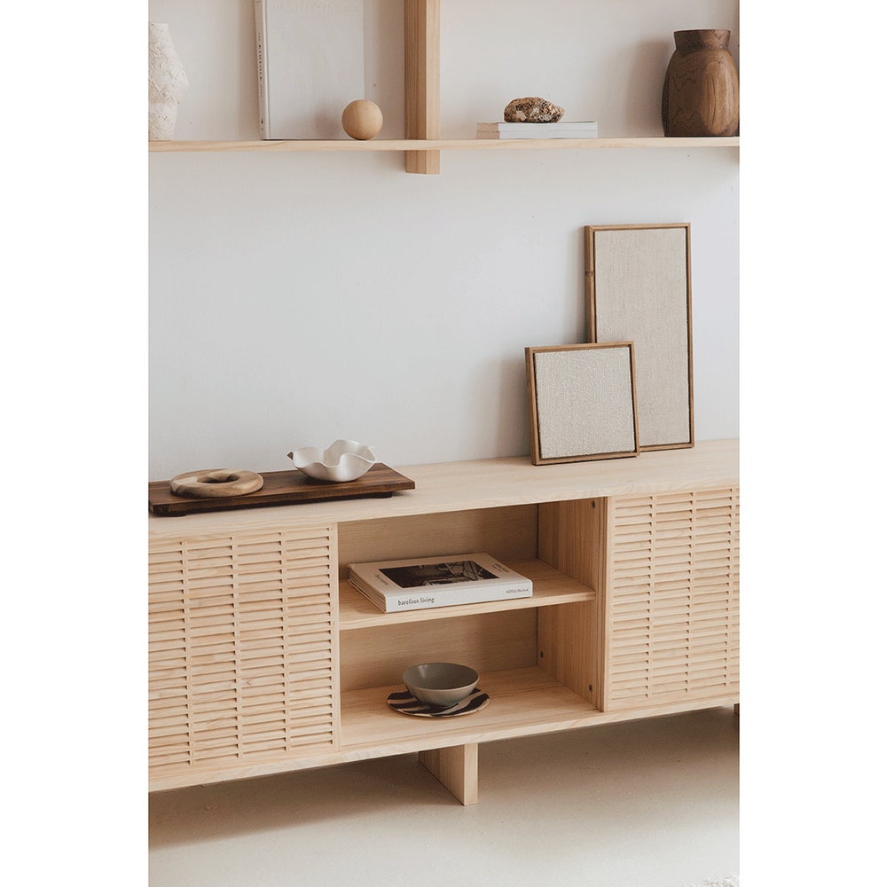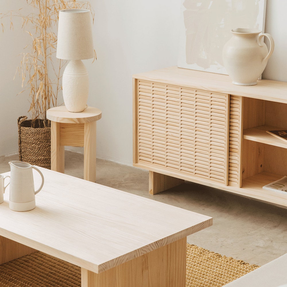 Introducing our Pedrera sideboard, a wooden buffet where aesthetics go hand in hand with functionality. Handcrafted from solid natural pine wood. This quality PEFC-certified material is sustainable and durable, not only guaranteeing longevity but also adding a natural, warm and welcoming look to your living room.