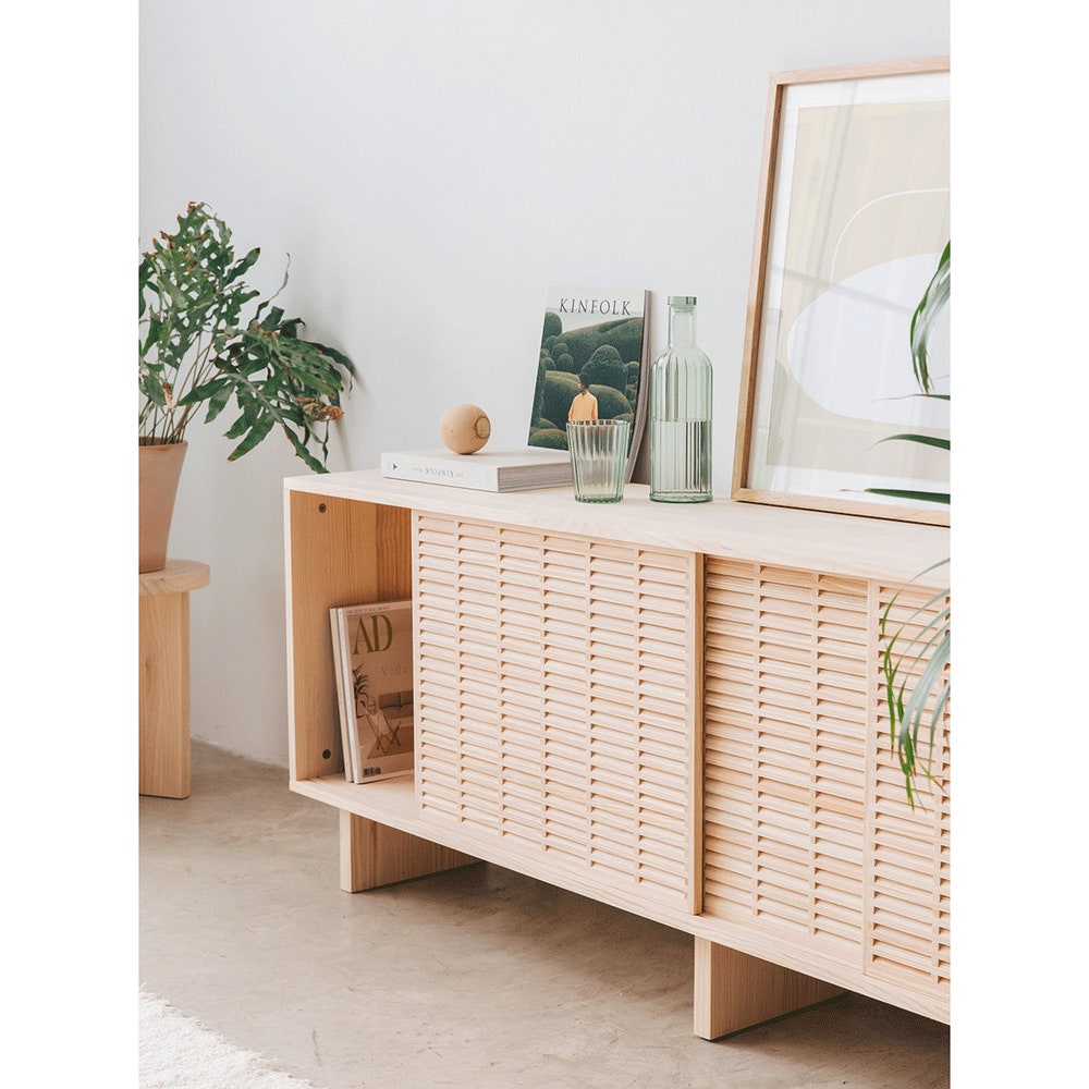 This sideboard has 2 or 3 sliding doors to choose from, made by expert craftsmen. A design that combines Scandinavian style with a Mediterranean aesthetic. Designed and manufactured in Valencia, Spain 🙂