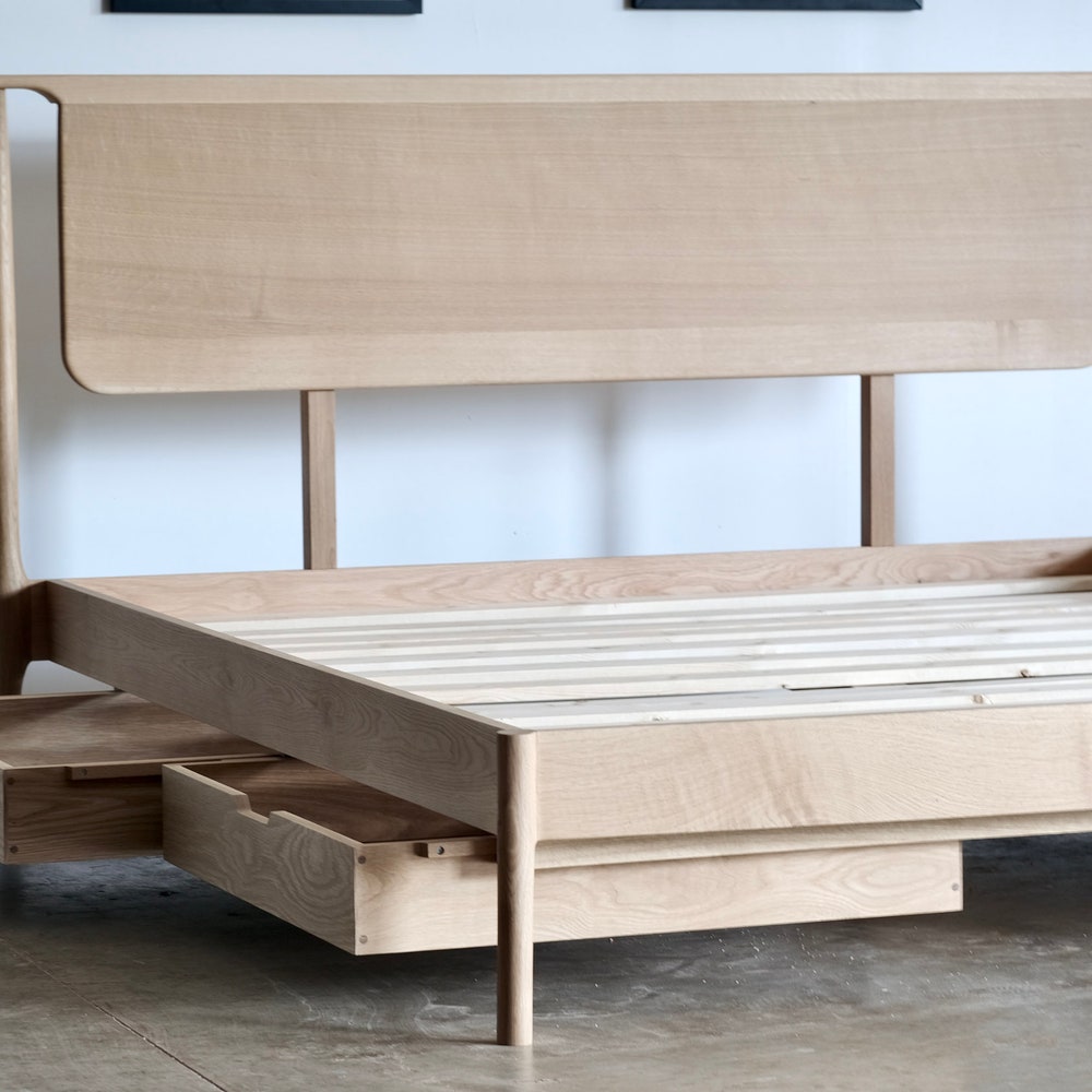 Bed Frame Handmade Furniture – Reclaimed Furniture Wooden Bed Frame – “Shapely” White Oak Bed Frame for Anniversary Gift – Platform Bed