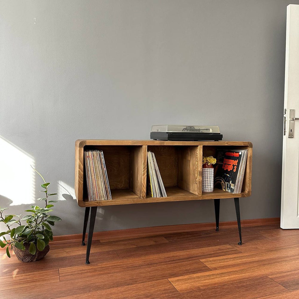 2 in 1 Rack variation, Turntable Stand, Wood Furniture, Handmade Record Player Stand, Industrial Vinyl Table, Media Hifi TV Unit