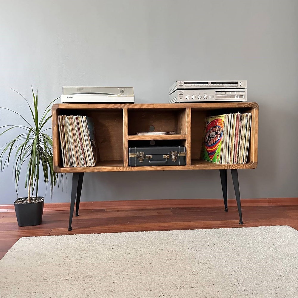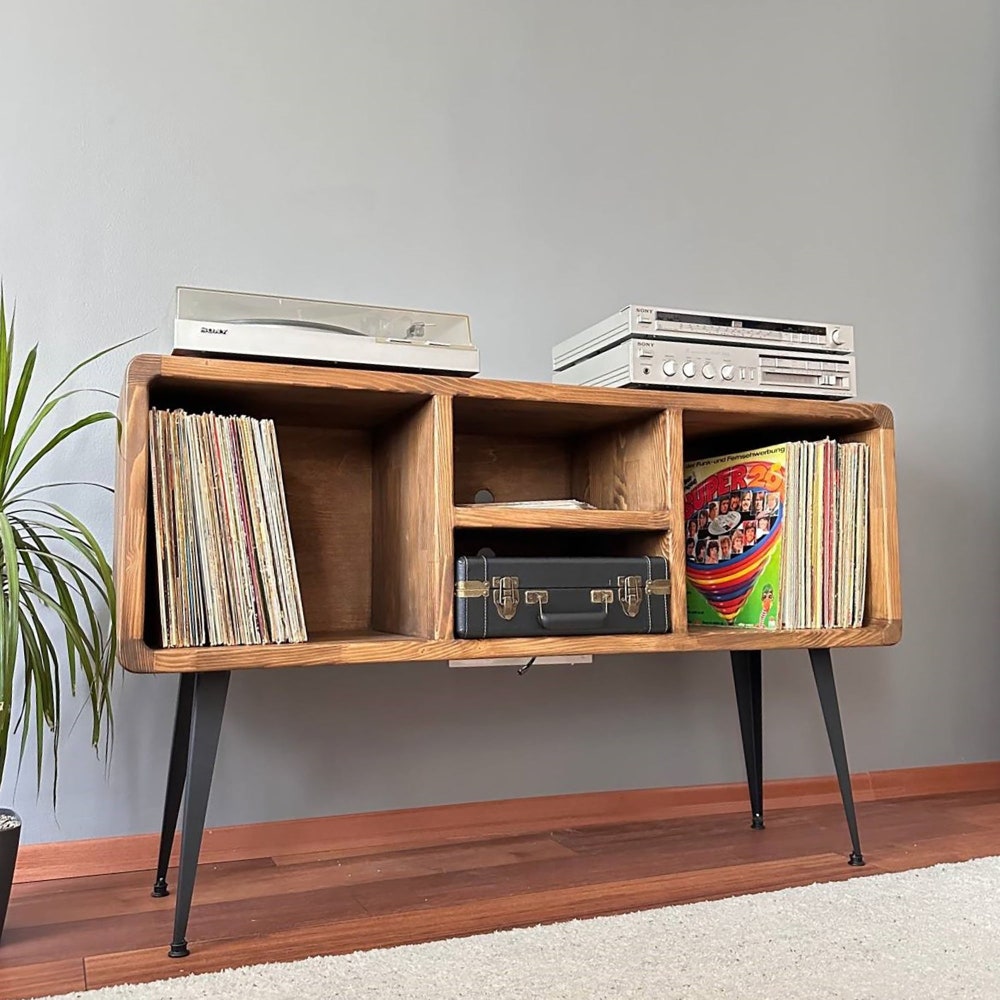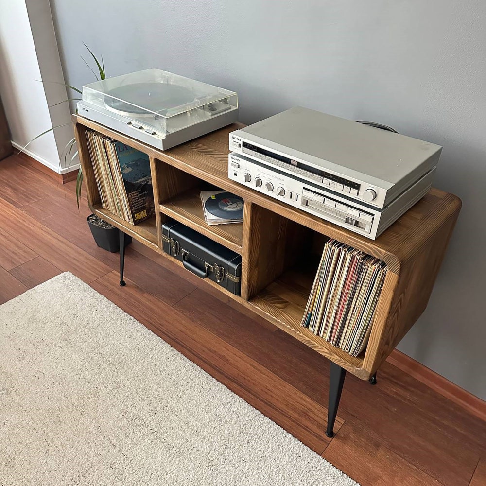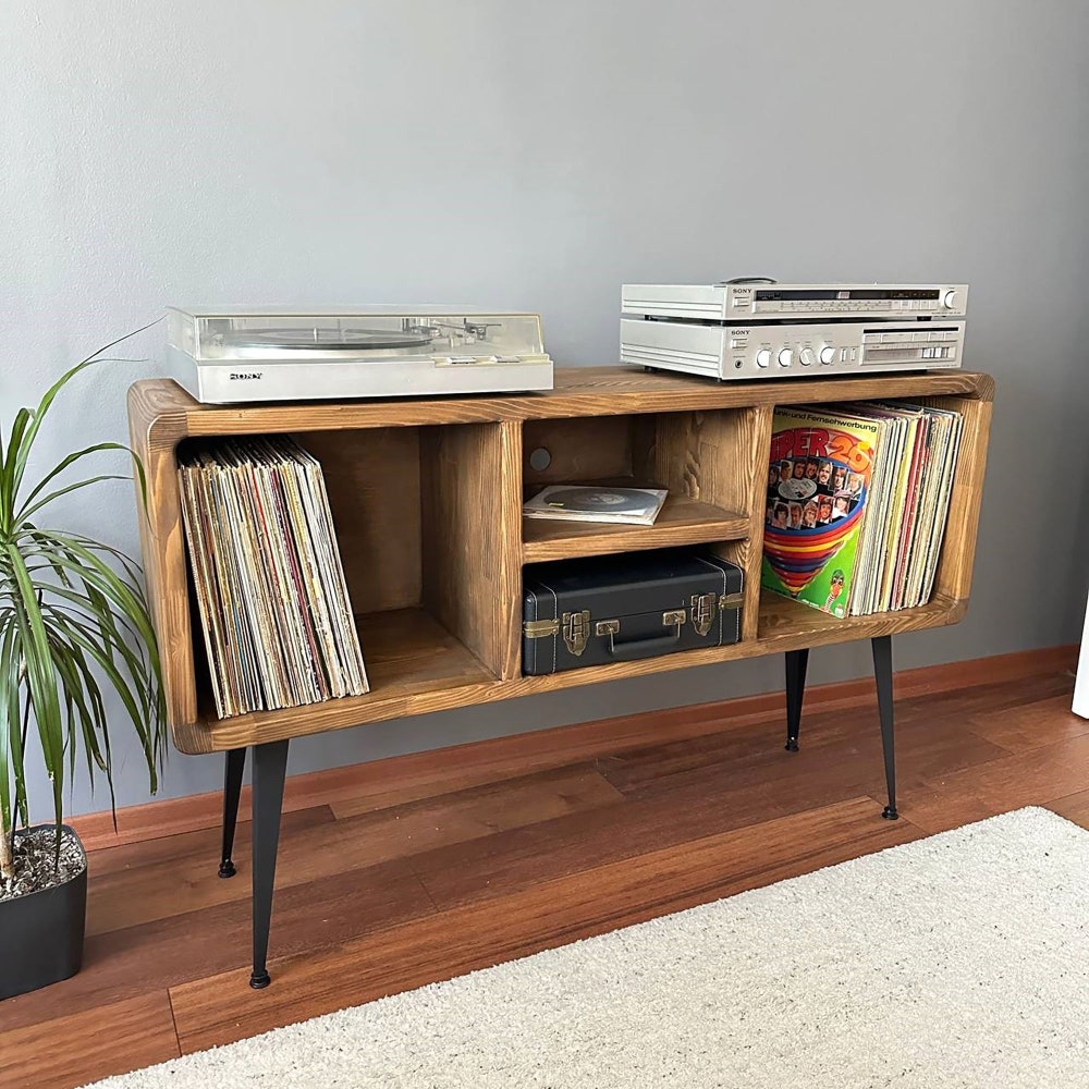 2 in 1 Rack variation, Turntable Stand, Wood Furniture, Handmade Record Player Stand, Industrial Vinyl Table, Media Hifi TV Unit