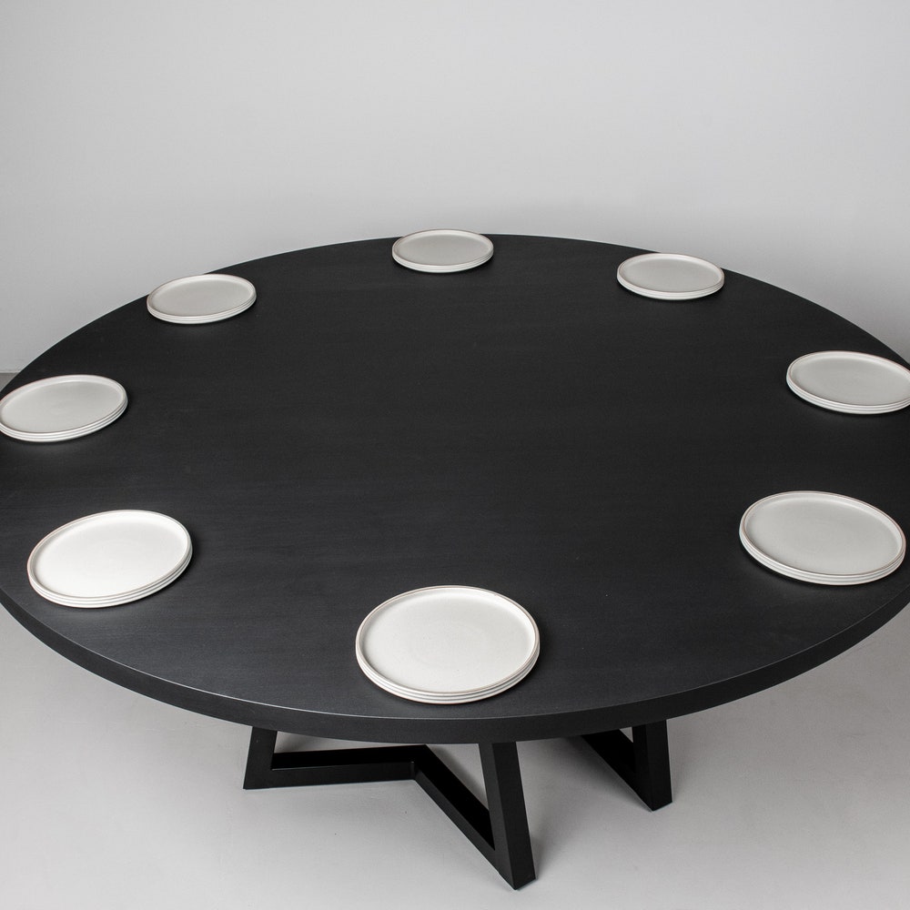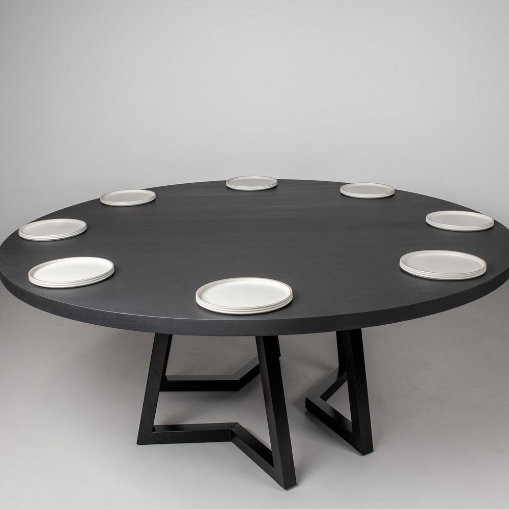 This solid wood round dining table adds a touch of elegance to a dining room. Finished in black and 72″ in diameter it is a piece that visually anchors a space. Round tables are great for facilitating conversation as everyone can see each other. We build every table to order so there are many ways to make this table perfect for you.