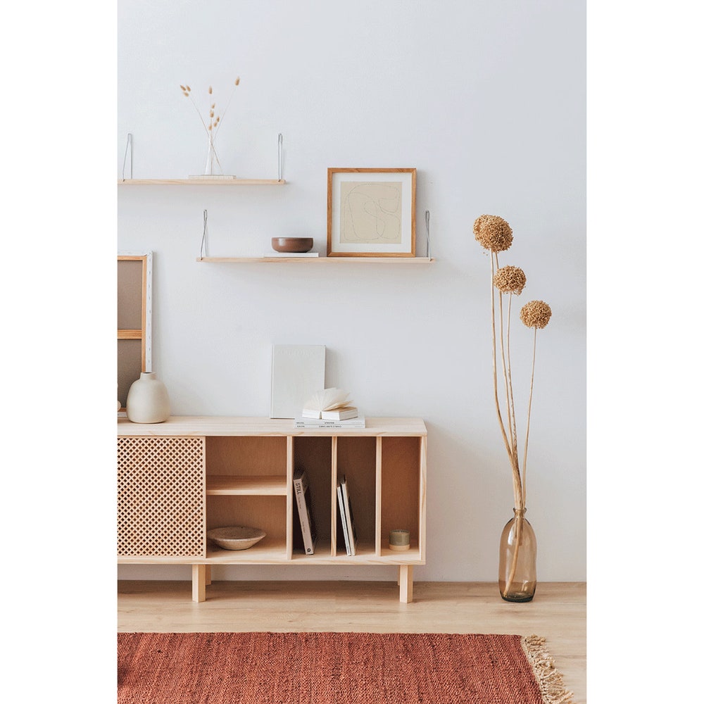 We present our low furniture, handcrafted with solid natural pine wood. Quality materials are PEFC certified to ensure sustainability and durability. This elegant credenza features two sliding doors of our beautiful lattice and design that effortlessly combines Scandinavian style with a timeless, Mediterranean aesthetic. *Finish: It can be purchased unvarnished or varnished (increasing the hardness […]
