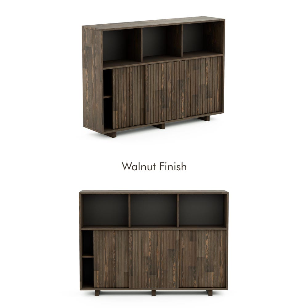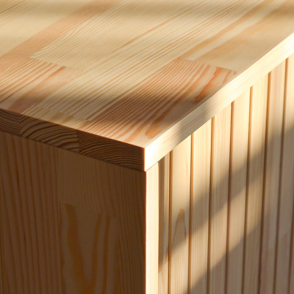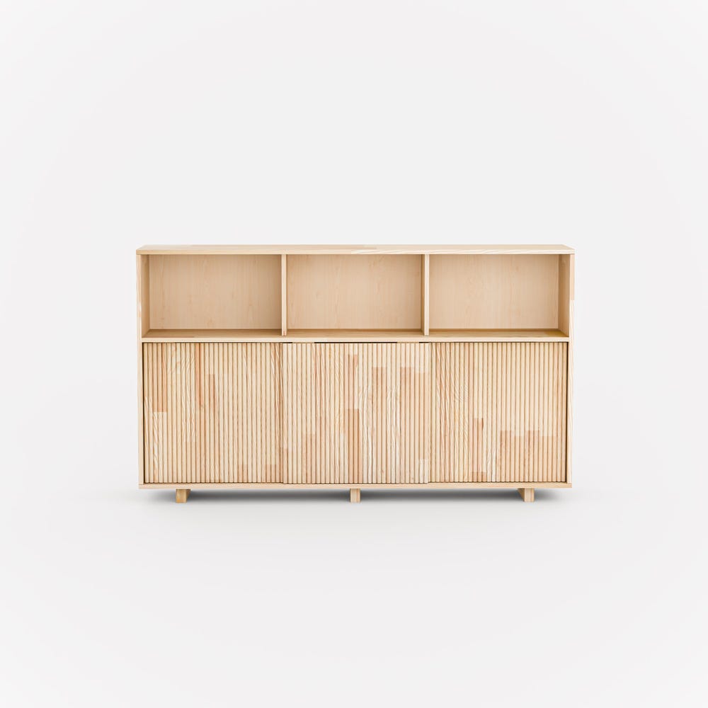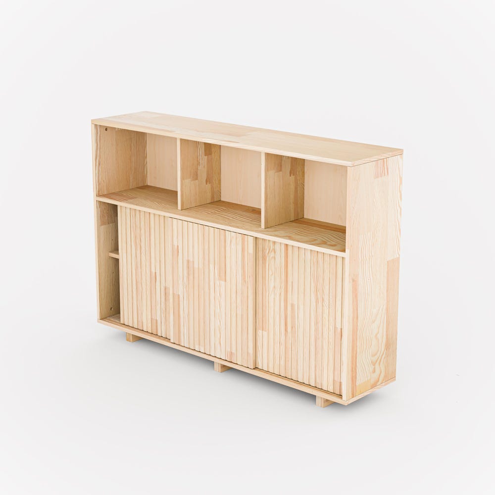 Our solid wood sideboard & buffet, crafted from FSC-certified solid pine wood for both sustainability and durability. This elegant sideboard features sliding wooden doors and a clean-lined design that seamlessly blends Scandinavian style with a contemporary aesthetic. Available in multiple sizes to fit any room, it offers versatile storage and display space for books, decorative accents, vinyl records and more. Choose from: unfinished, varnished and VOC-Free Oil Finish and walnut. Elevate your home decor with the understated elegance and charm of Scandinavian design. Perfect for adding a touch of sophistication to any living space, this shelf combines functionality with timeless appeal.