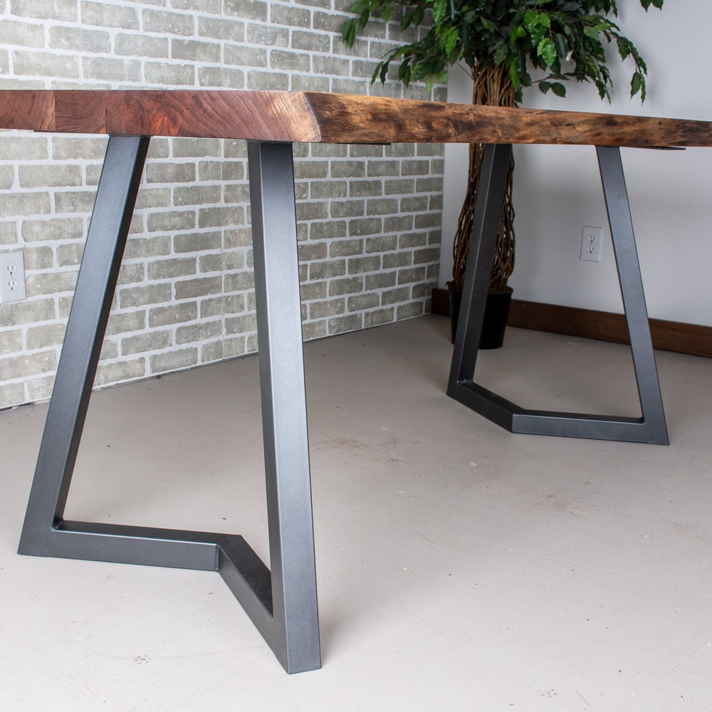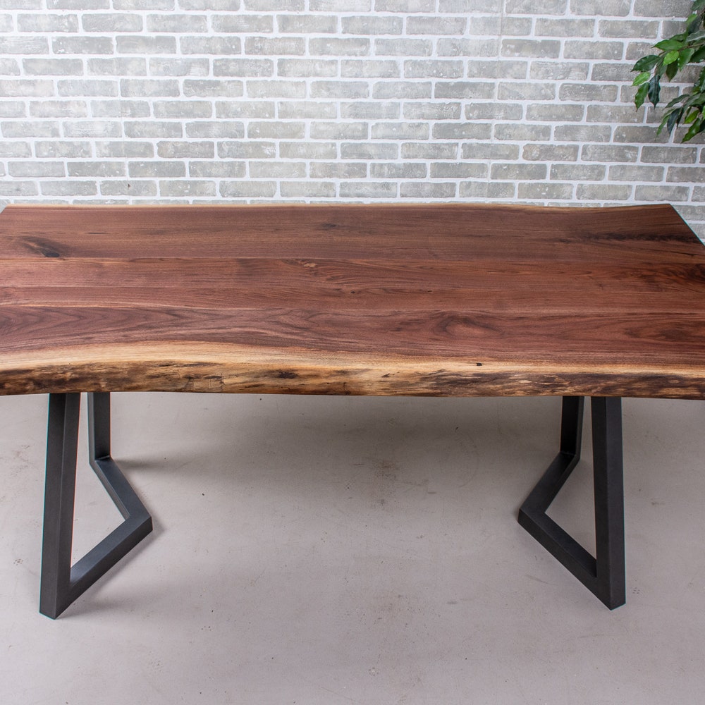Solid Wood Table, Live Edge Walnut Table on Grey Steel Legs, Natural Edge Dinner Table, Customized Live Edge Table, Wood Live Edge Table