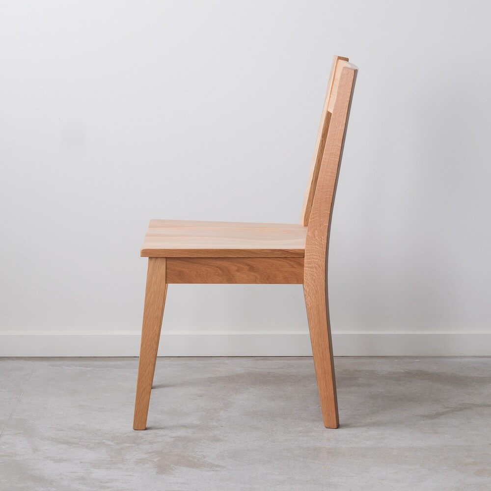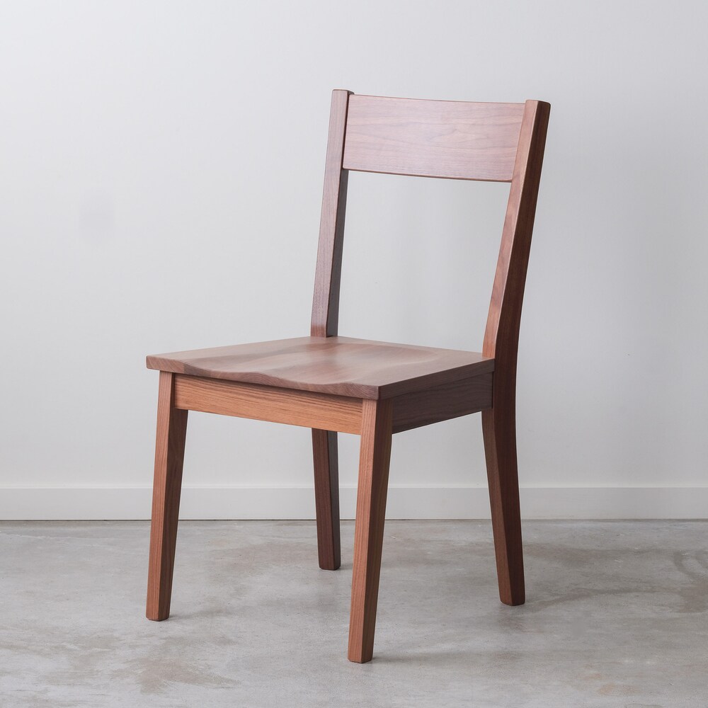 Our first chair design. This pairs beautifully with a Ventura or Parsons dining table. Finished with a clear, low sheen conversion varnish to provide durability and water resistance.