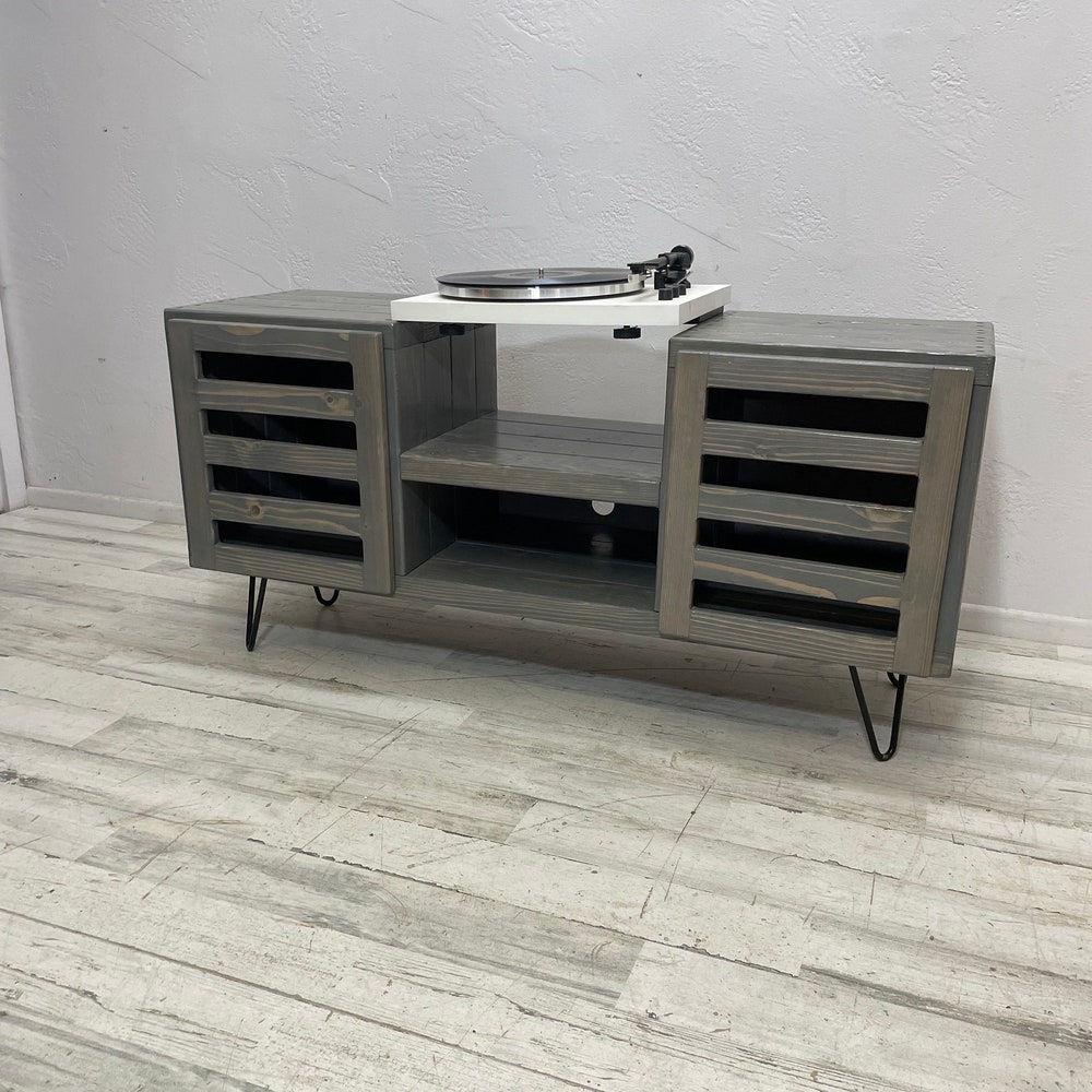 Sonos Speaker Stand Ready to ship 45 inch drop set with modern doors in classic gray