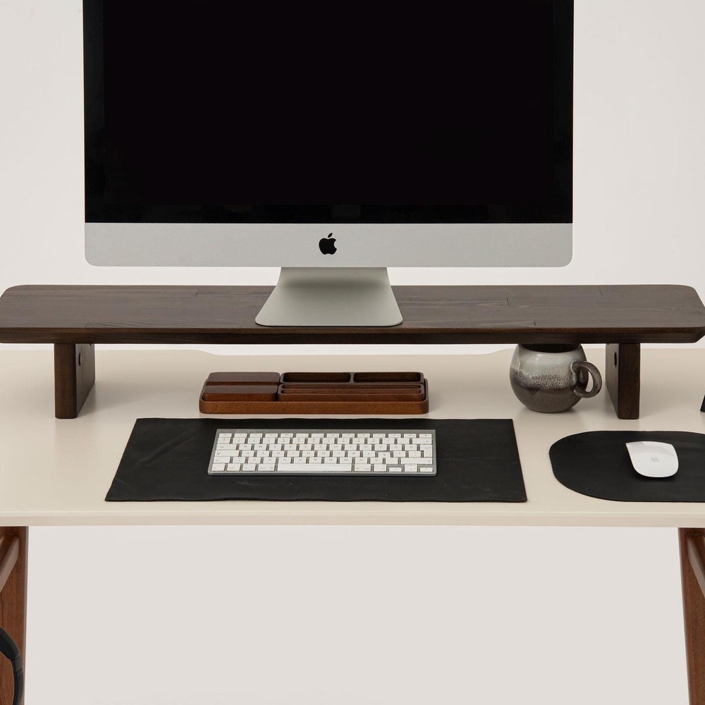 Enhance your desk with this spruce wooden monitor stand for an organized and ergonomic workspace! 🌿