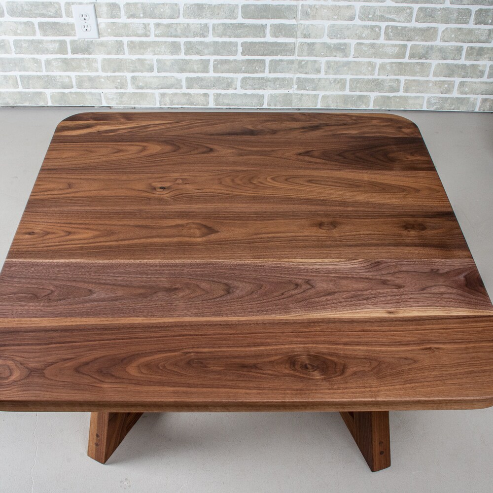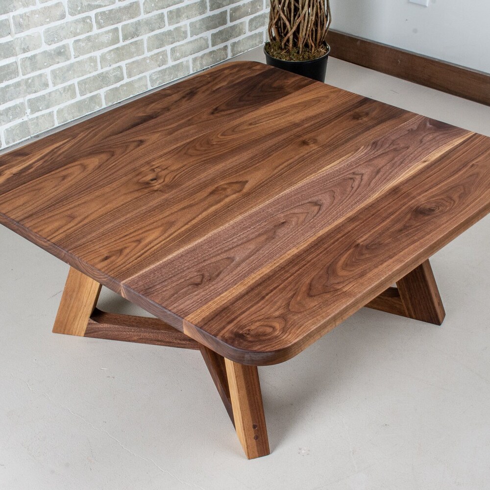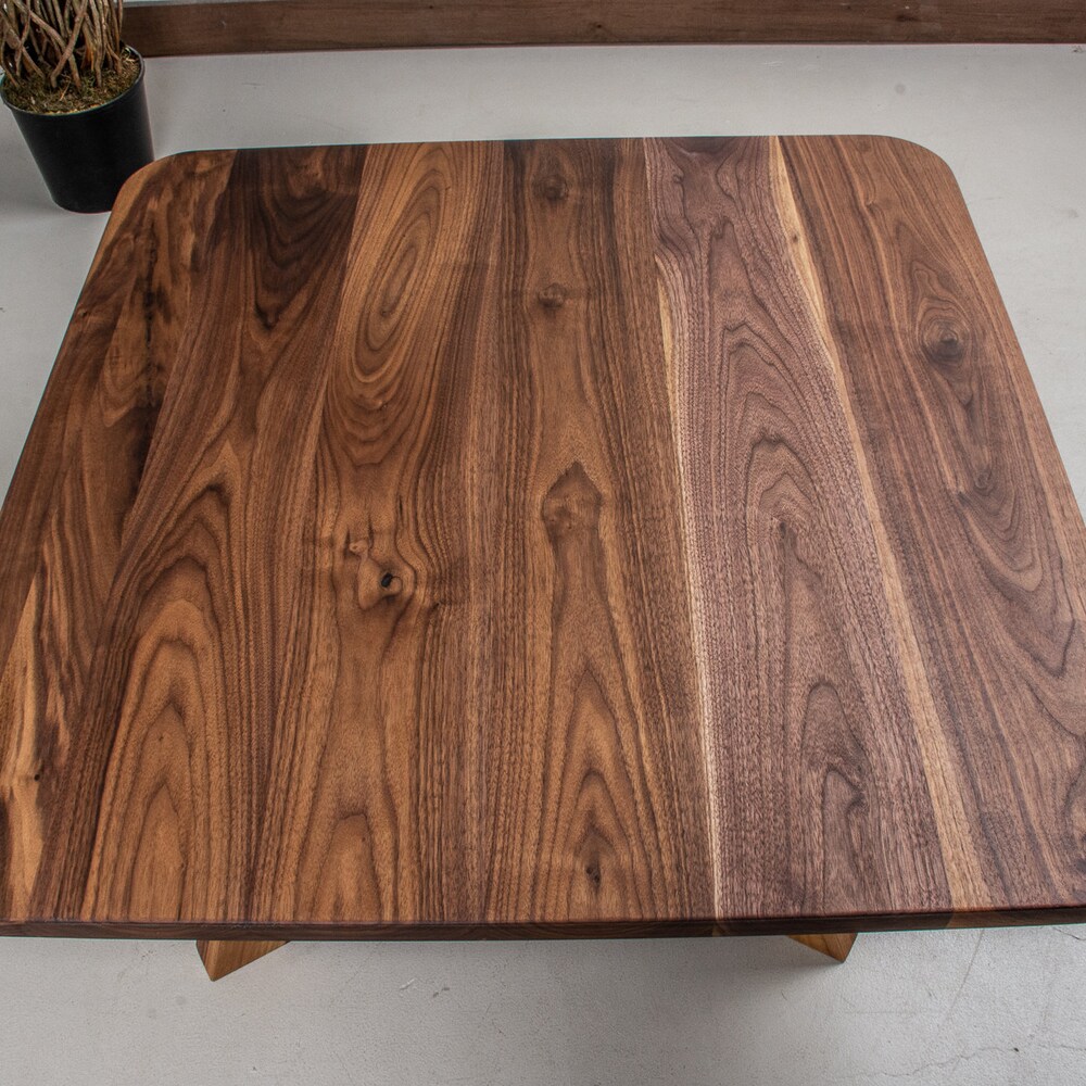 This square coffee table leans into modern styling. Made of solid walnut with rounded corners and edges, it picks up on the colors tones and organic shapes of mid century modern designs, making it a great addition to your living room. We build every table to order so there are many ways to make this coffee table perfect for you.