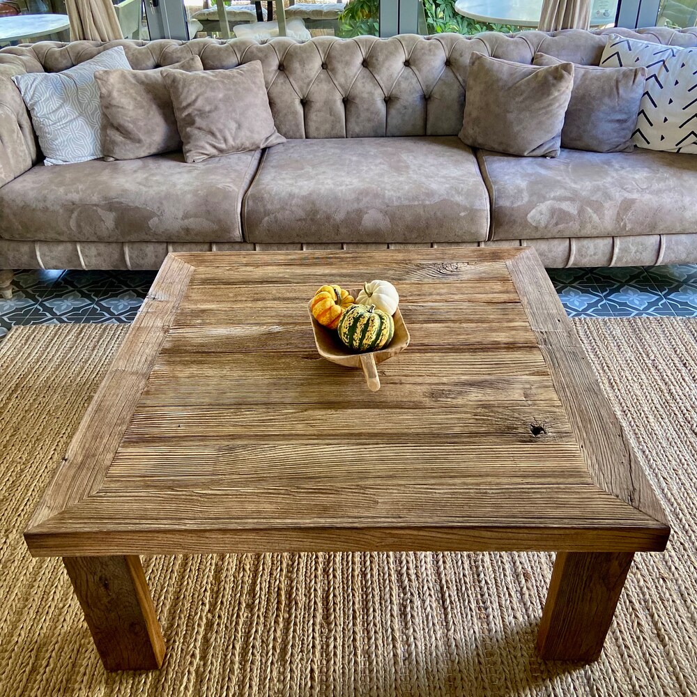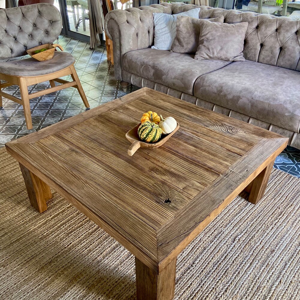 This Square Rustic Coffee Table is crafted with care using 60-year-old Reclaimed Oak. The natural texture of the Wood Coffee Table, shaped by decades of exposure to sun, rain, and wind, gives it a character and appearance that cannot be replicated by any other material. Each piece carries the marks of its history, adding warmth and storytelling to your home. This Reclaimed Wood Table is not just a piece of Wood Furniture—it’s a work of art!