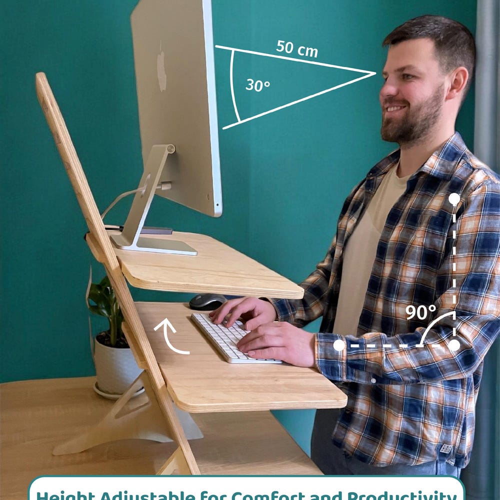 Wooden standing desk riser, Wood standing desk converter, Natural standing desk converter, Wooden desktop riser, Wood sit-stand desk converter, Adjustable wooden standing desk converter, Wooden standing desk platform, Wood height-adjustable desk converter, Standing desk converter with wood finish, Wooden stand-up desk riser, Standing desk, Adjustable desk, Sit-stand desk, Stand-up desk, Height-adjustable desk, Standing workstation, Standing office desk, Standing desk converter