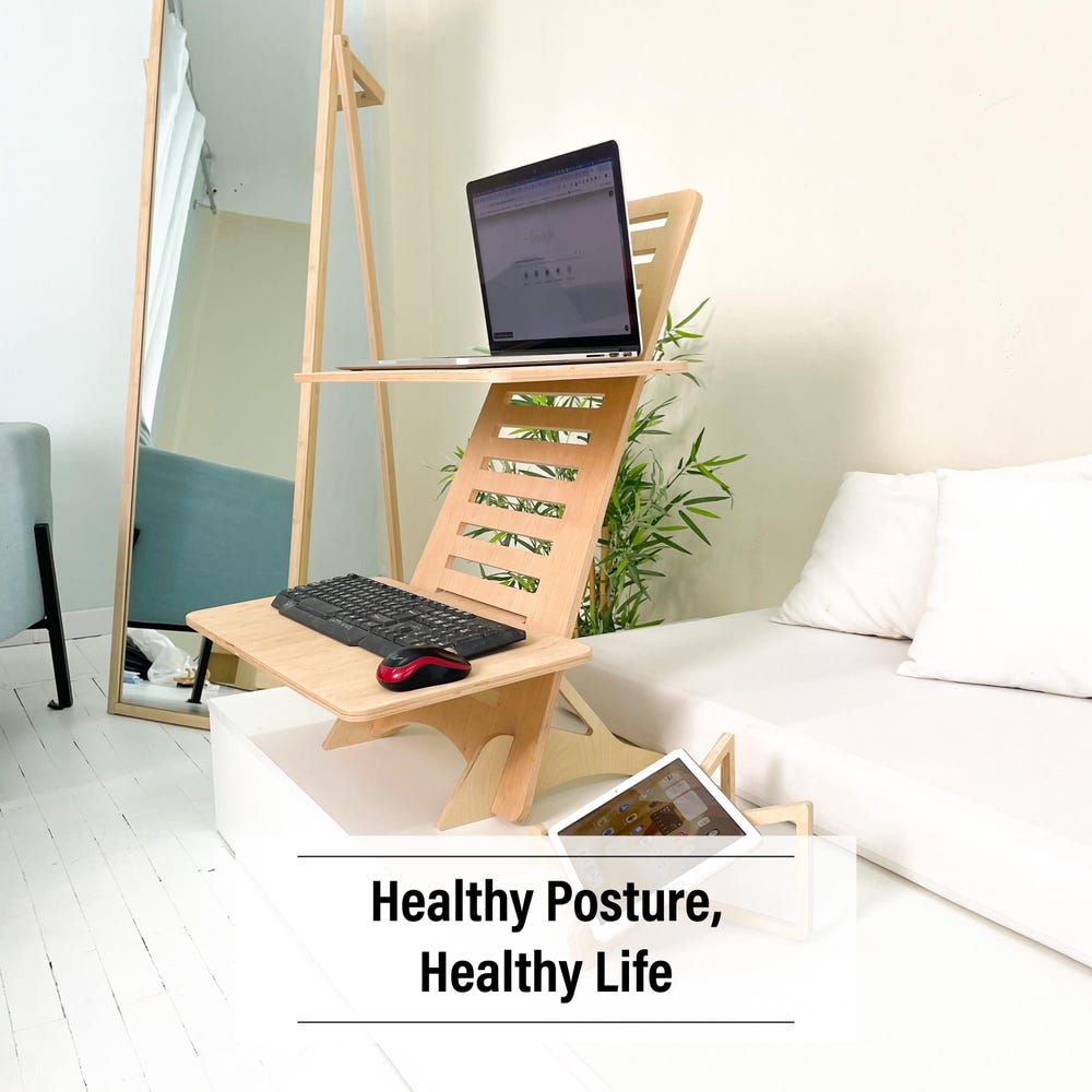 Looking for the perfect desk to improve your workspace and health? Our adjustable plywood standing desk with dual shelves is the ideal solution! Stylish, ergonomic, and space-saving, it’s perfect for your home office, dorm, or creative workspace.