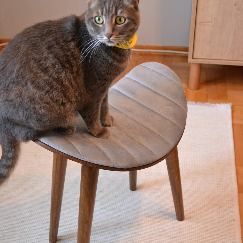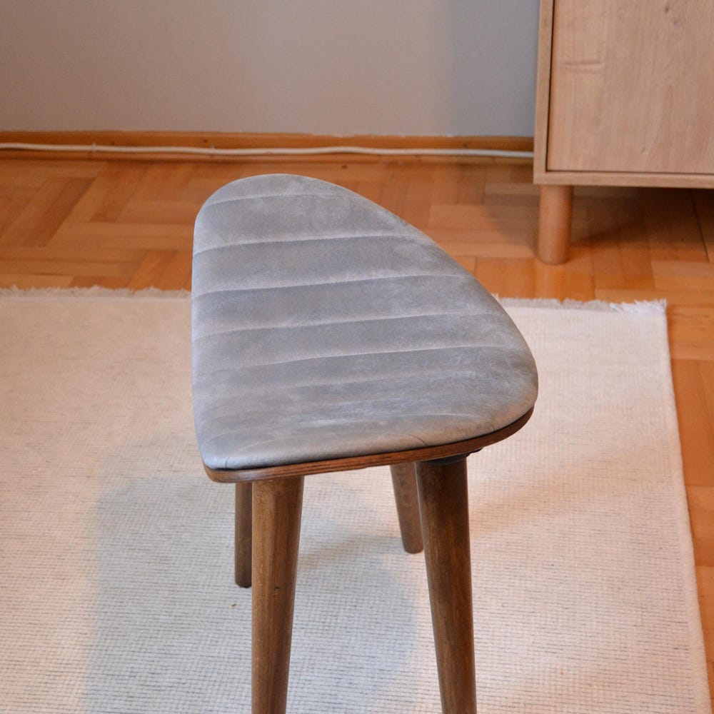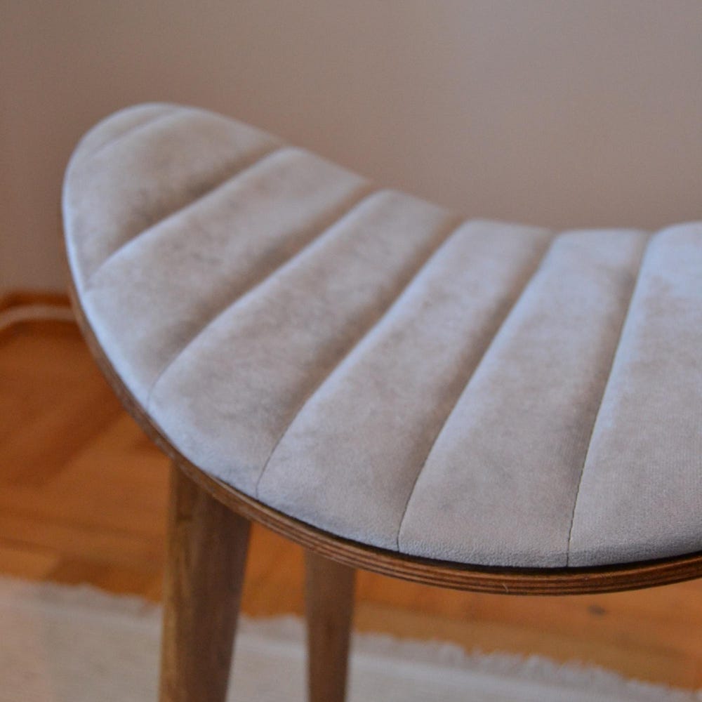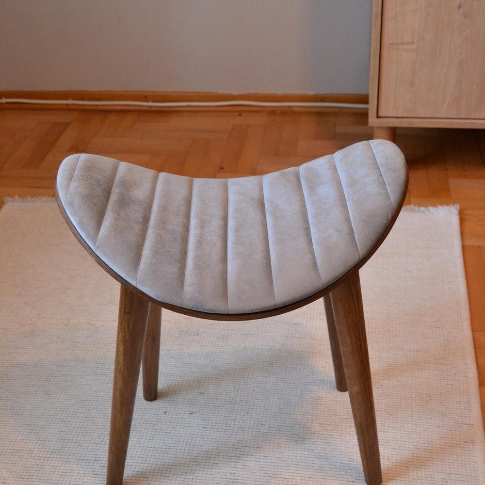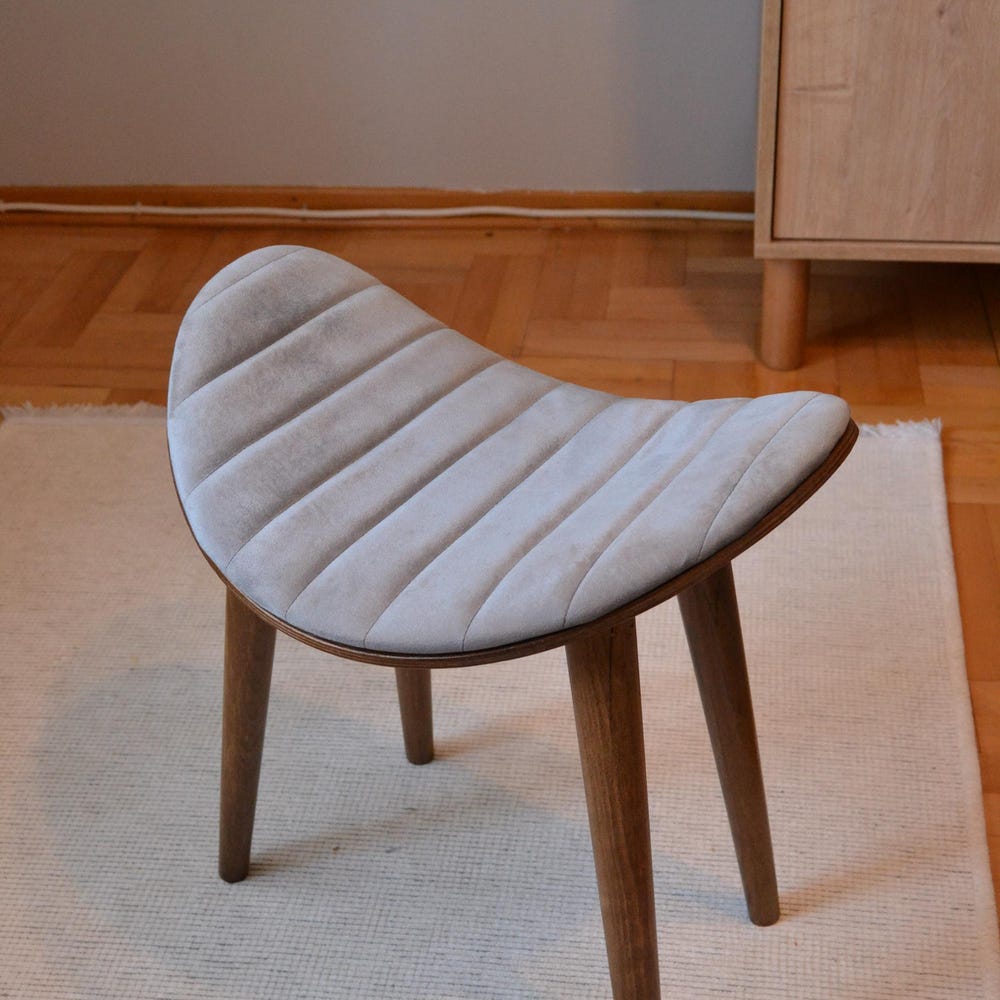 Stone Modern Wooden Stool – Beech Wood Legs, Upholstered Minimalist Seat, Compact Accent Stool, Easy Assembly Furniture