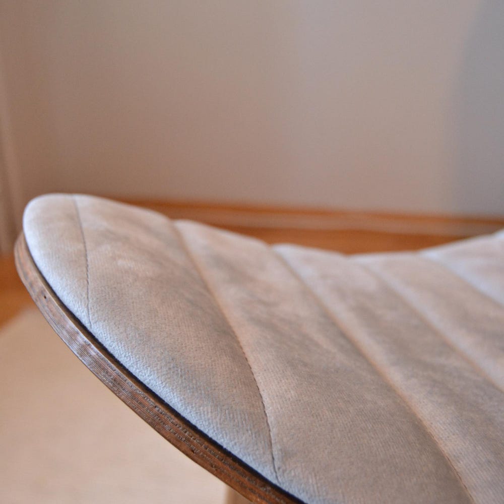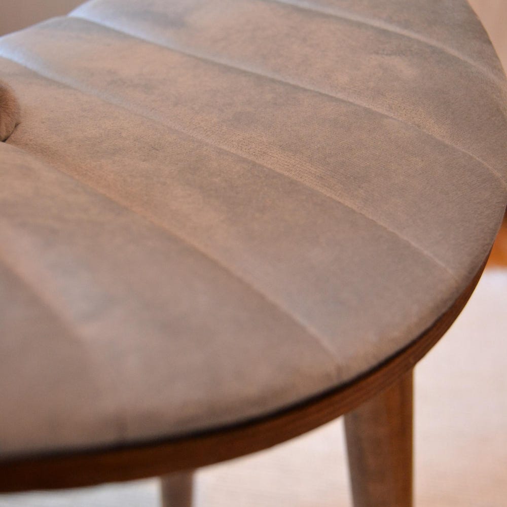 Upholstered seat with soft, textured fabric for comfort and style.
