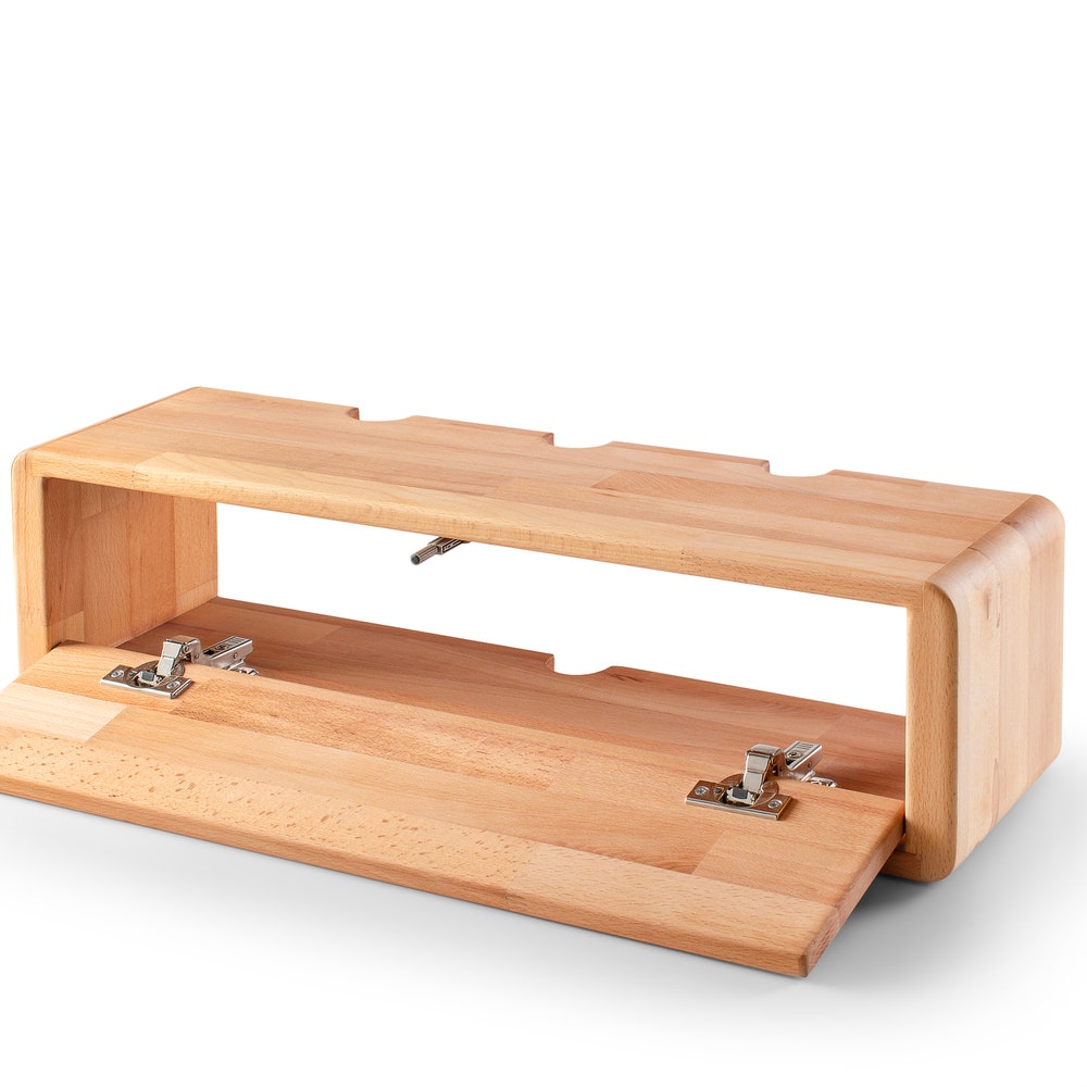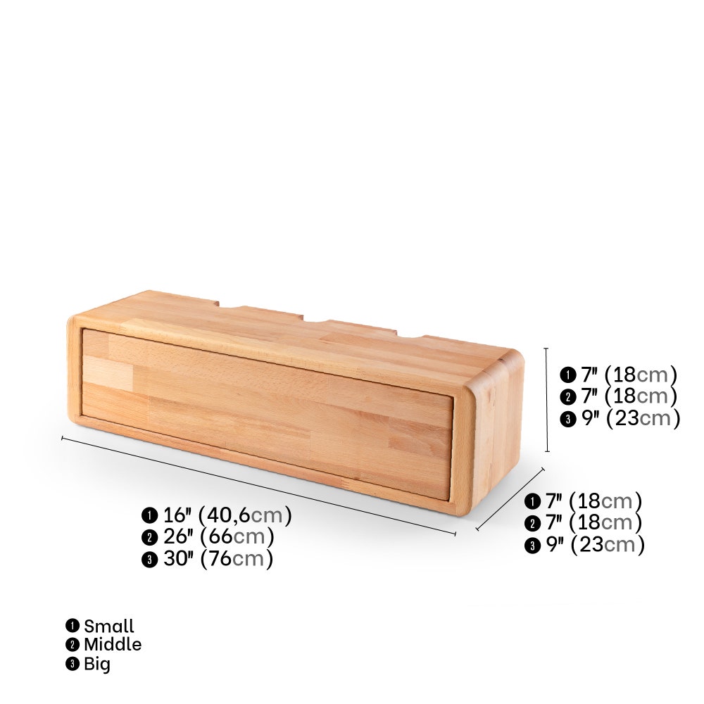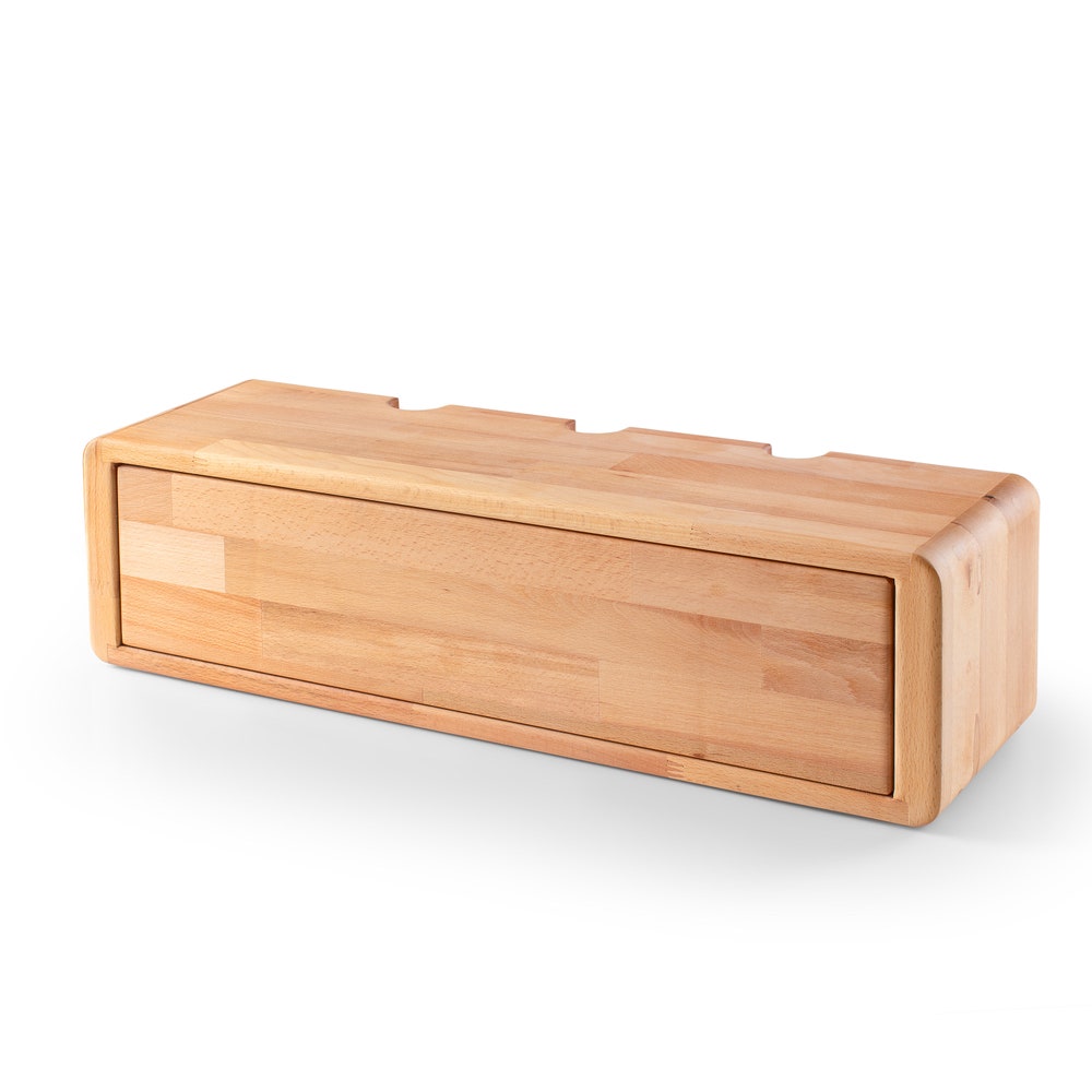 Cable Storage Box is made in hand by using top quality solid beech wood and covered with protective hard wax wood oil to preserve the organic texture of the wood. The hard wax finish has %0 VOC content and has a water, heat and UV resistance, also food contact compliance and toy safety.
